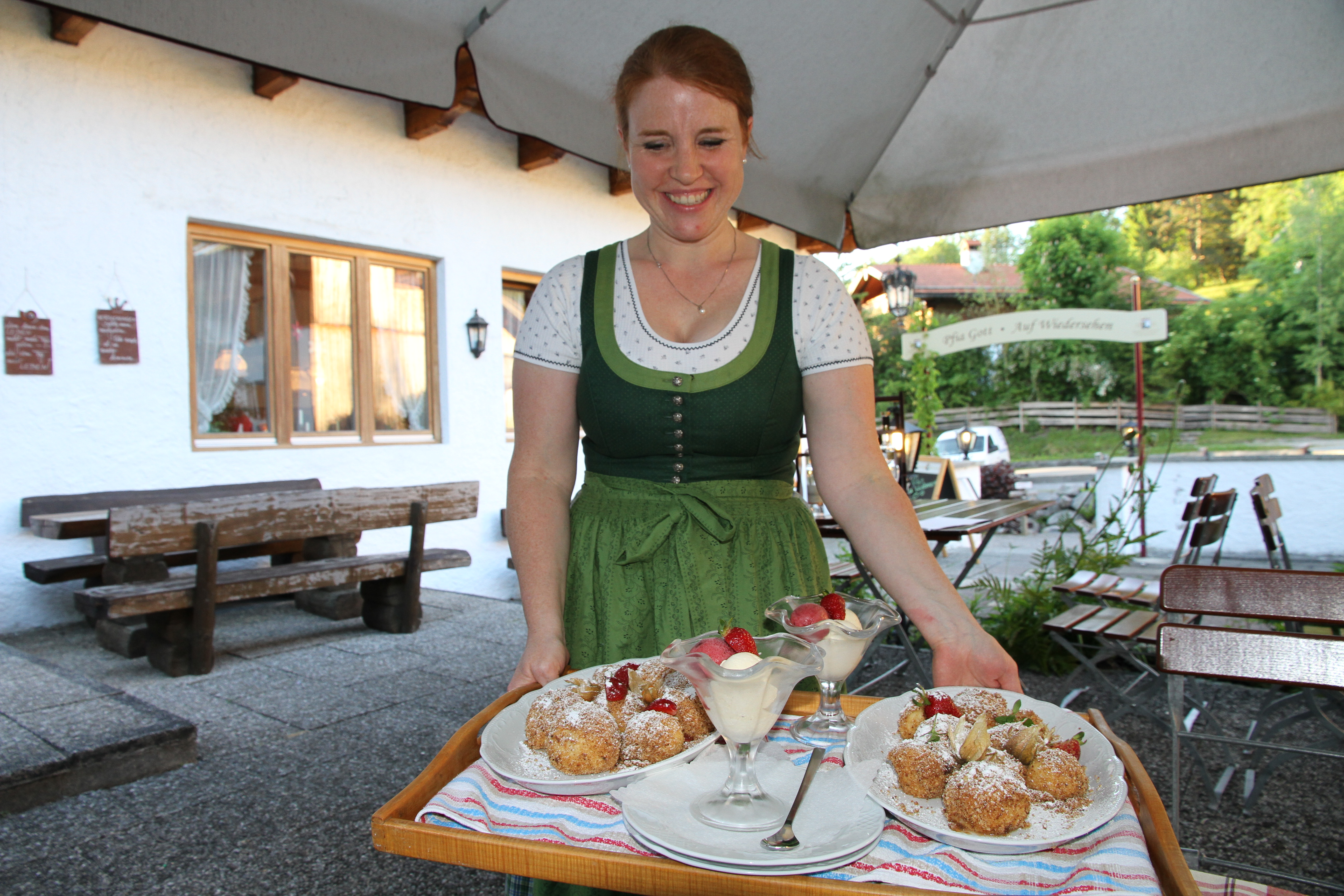 „Je kompakter der Knödel vorher ist, desto fester ist er auch hinterher“, so die Knödel-Expertin. Viele Rezepte stammen noch von Michaelas‘ Großmutter, aber die fesche Wirtin hat ebenso eine kreative Ader. Und wer nach dem Knödelseminar keine Teigkugeln mehr sehen kann, dem lacht sie ins Gesicht: „Sie müssen heut so lang welche essen, bis Sie selbst aussehen wie ein Knödel!“ Na denn mal: Guten Appetit!