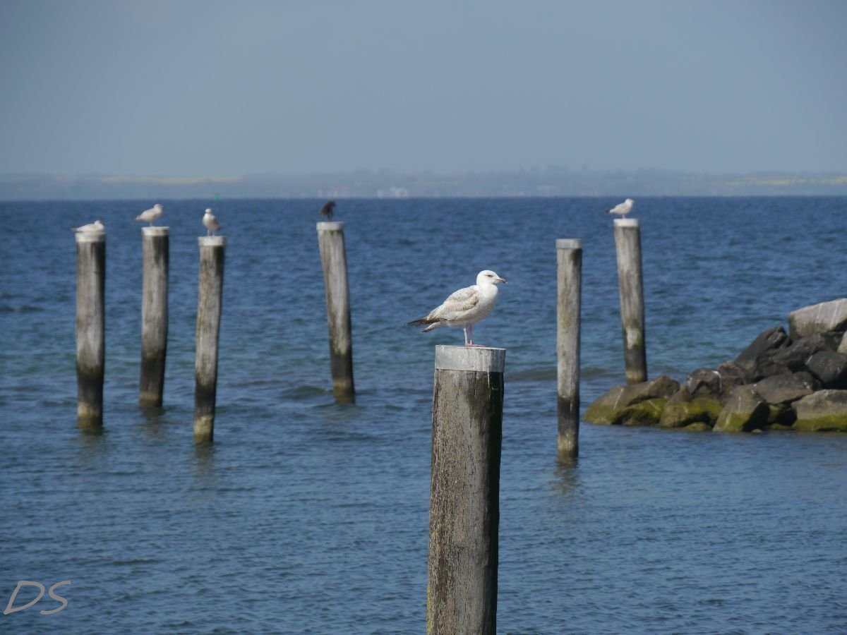 Wasser – immer wieder ans Wasser. Ich wusste gar nicht, dass Schwäne auch im Salzwasser leben – aber vor Poel dümpeln und gründeln sie den ganzen Tag in den Wellen. Manchmal muss man erst aufs Auftauchen warten, um zu wissen, ob das helle Dreieck in der Ferne ein Segel ist – oder doch ein Schwanenbürzel?