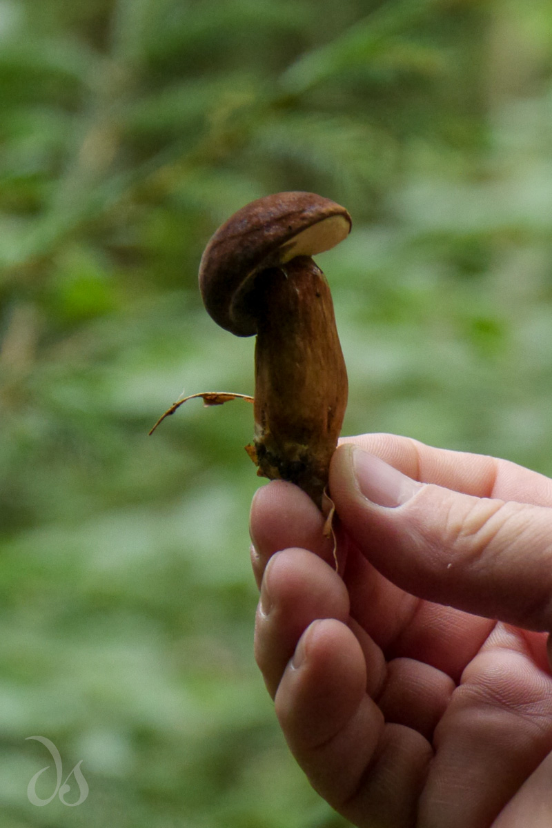 Und da tauchen auch schon die ersten Pilze auf. Daphna Zieschang, Nationalpark-Führerin, kennt sich aus: Knallorange Edelreizker, zierliche Bläulinge oder – Hexen-Röhrlinge. Der letzte heißt so, weil er sich beim Aufschneiden an der Luft ganz schnell fies verfärbt… Soll aber gekocht richtig gut schmecken!