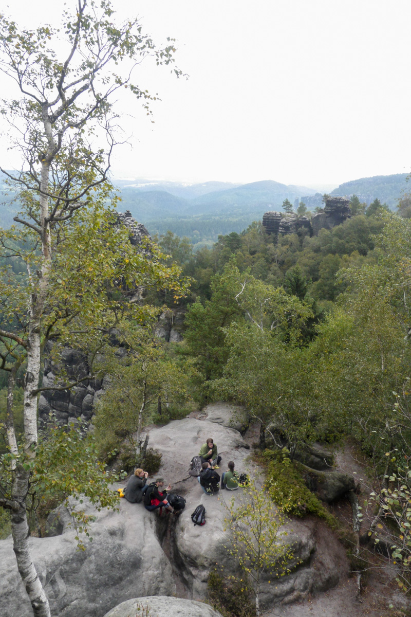 Strahlendes Herbstwetter, schon seit Wochen immer wieder – und eigentlich wollten wir nur bei blauem Himmel durchs Elbsandsteingebirge wandern. Zu den skurrilen Felsformationen, über steile Stufen und Stiegen, zum weit über den Nationalpark hinausragenden Aussichtspunkt hoch auf den Schrammsteinen.