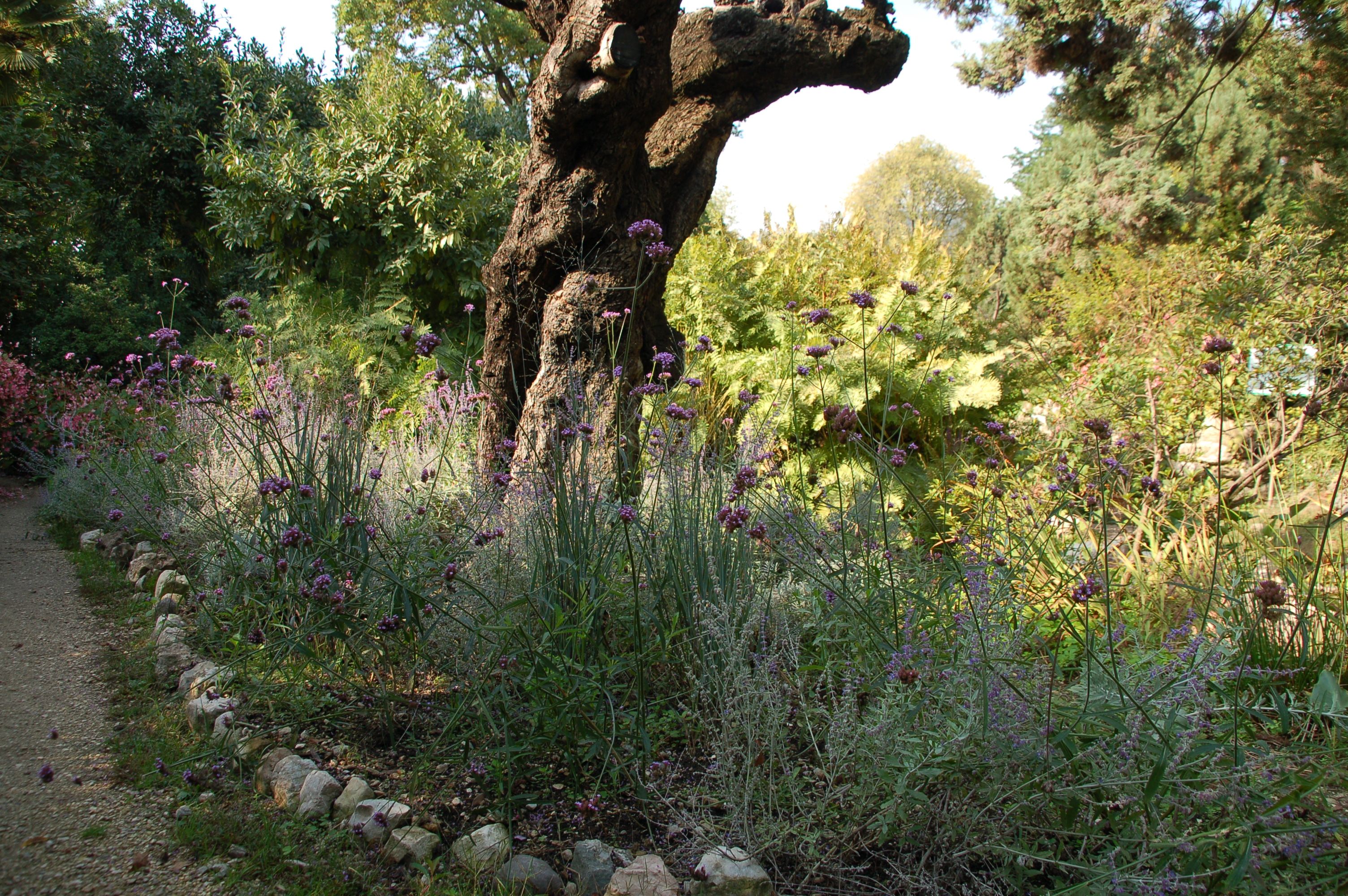 Diese drei Beeteinfassungen habe ich im Giardono Botanic von André Heller am Gardasee entdeckt: Die erste ist aus Bambusstäben, bei der zweiten hat das tiefe Blau auf eigentlich unschönem, grauen Zement Farbakzente gesetzt, bei der dritten sorgen große Kiesel für einen natürlichen Look.