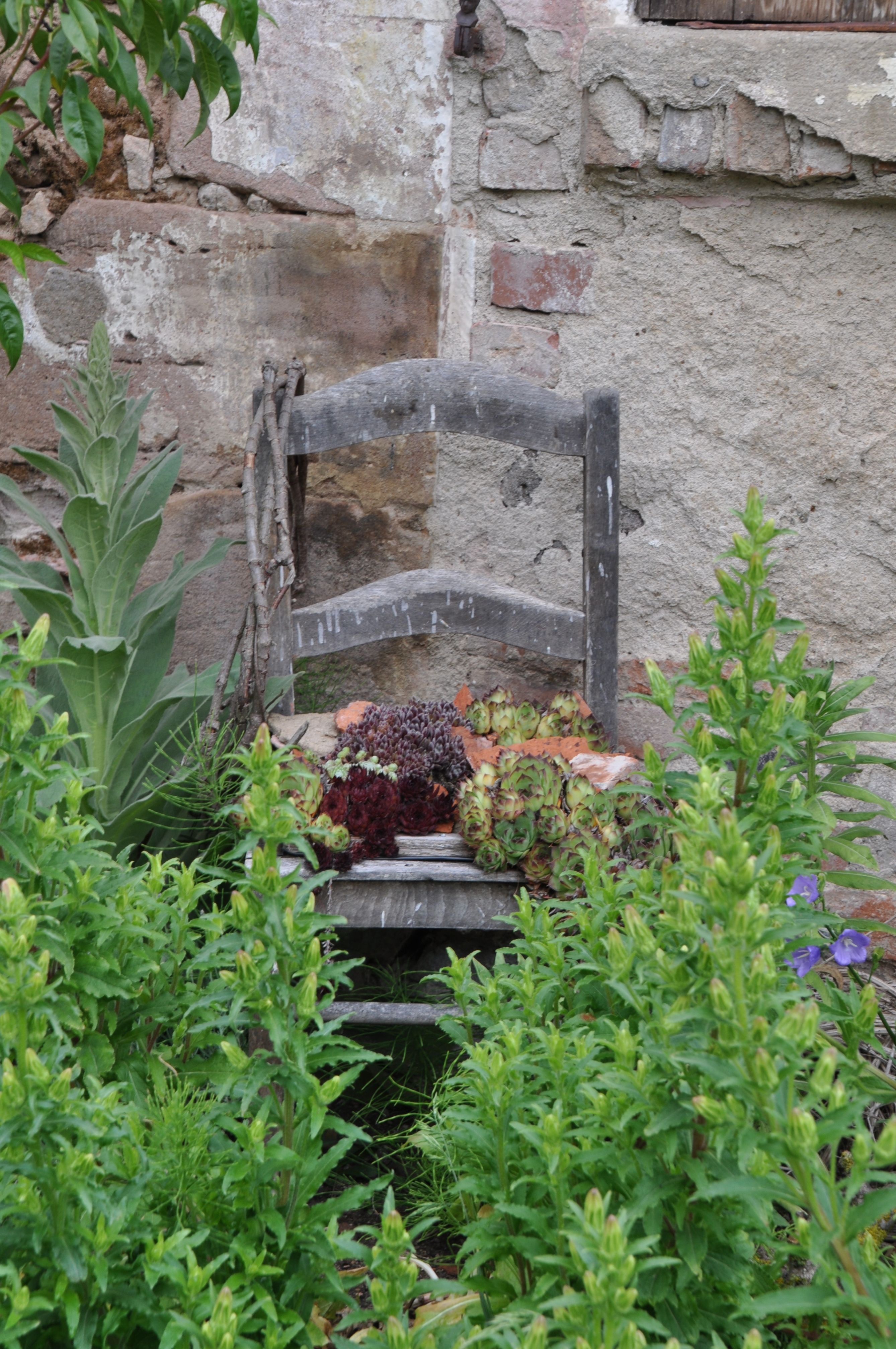 Wie hübsch so ein alter Stuhl doch aussehen kann, gesehen in Wolframs-Eschenbach an der Burgenstraße: