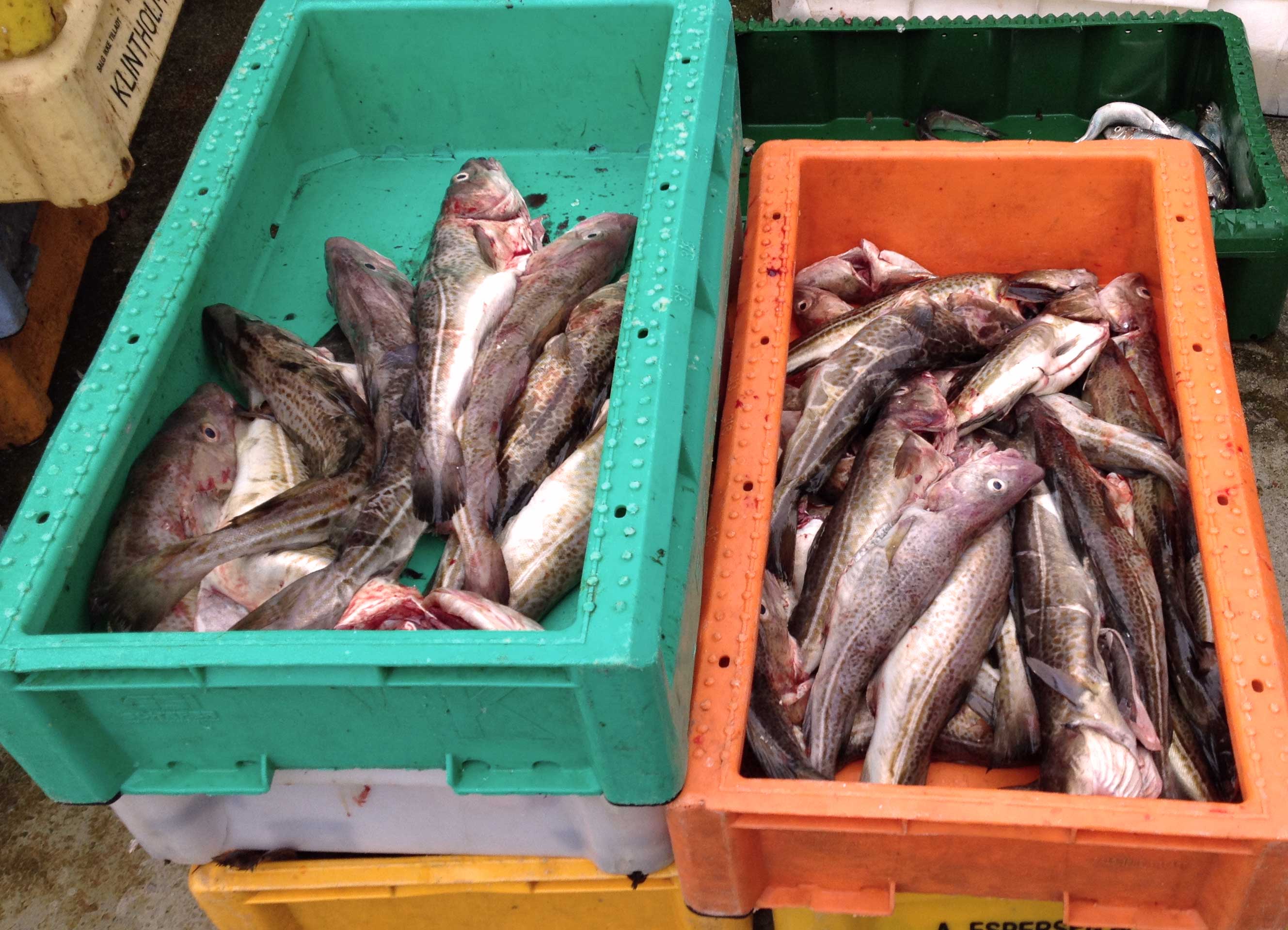 Beifang wie etliche kapitale Dorsche und andere größere Fische rutschen in eine Wanne, wo sie sogleich ausgenommen werden. Interessiert gucken wir dem Treiben zu. „Guck mal ein Seehase, ist ja auch bald Ostern“, witzelt ein Arbeiter und hält uns einen unförmigen, grau-grünlichen Fisch unter die Nase. Allerdings ohne lange Ohren, dafür recht unelegant, fast quadratisch, weshalb das Vieh auch Lump – englisch Klumpen – genannt wird. „Nee, schmecken tut der nicht“, beantwortet der Mann Freddies Frage.