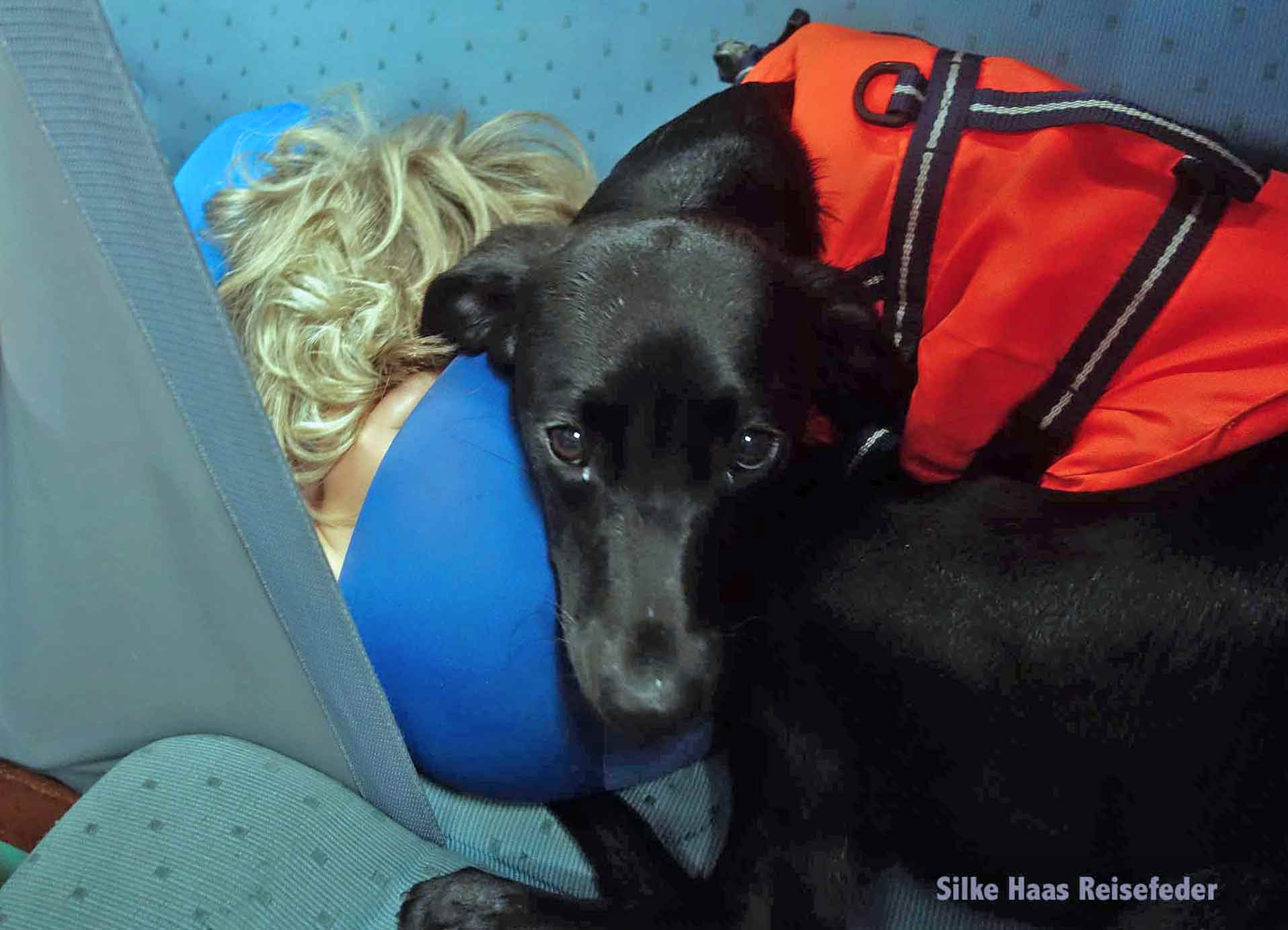 Aufgeregt wuseln die Hunde Jule und Tilda in ihren orangefarbenen Schwimmwesten auf Deck hin und her. Ich muss nur aufpassen, dass kein Hund wieder an Land springt. Beim Ablegen binde ich sie immer am Mast fest, da Julchen gerne alleine Hafen und Essen-Bettel-Klaumöglichkeiten erkundet. Doch beide bleiben da und dann sind die Leinen auch los. Dann Uku auf der Schlei gen Ostsee, kommt das Meer-Gefühl. Die Sorgen und Nervereien vom Land sind zwar nicht weg, aber erreichen mich nicht mehr. Das Handy ist nämlich aus. Wichtig ist jetzt nur noch: Was machen Wind und Wetter, was gibt’s zum Essen und was macht Freddie?