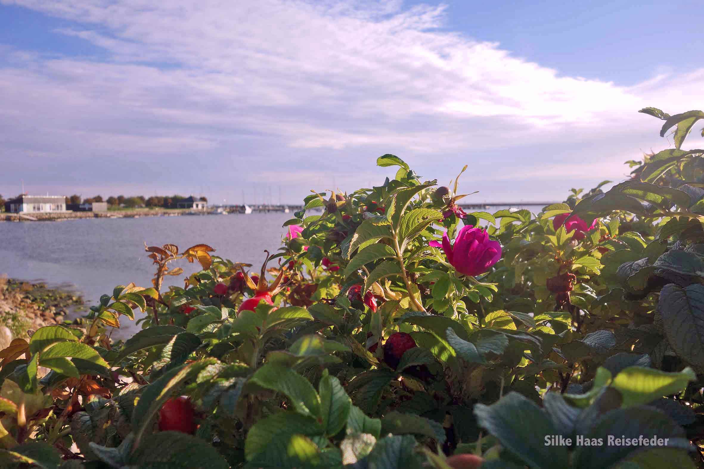 Unsere Tour führte uns von Kappeln an der Schlei über Bagenkop, Fehmarn nach Kühlungsborn und wieder zurück nach Fehmarn, weiter nach Marstal, Langballigau bis nach Flensburg. Dann über Sonderburg zurück nach Kappeln. Kein Meilenfressertörn, dafür schöne Strand- und Hafentage. Rasmus war uns auch gnädig und schenkte uns Sonne und Wind. Zum Glück nicht zuviel und nicht von vorne. Eigentlich mag ich es ja knackig, aber mit Kind und zwei Hunden ist Kreuzen bei ordentlich Wind kein Vergnügen. Geht aber auch. Auf dem Schlag nach Flensburg ging es richtig zur Sache. Windstärke fünf, in Böen sieben und ein paar Schauer. „Mama, woher kommen die Glassplitter in meinem Gesicht?“, fragt Freddie und meint die feinen Regentropfen, die der Sturm wie winzige Rasierklingen in die Haut schlägt. Das Wasser rauscht am Rumpf entlang, Gischtfetzen fliegen und der Wind heult in den Masten. Mit gereffter Genua fliegen wir fast über die Förde. Als eingespieltes Zweierteam gelangen uns früher blitzschnelle Powerwenden, mit Anhang würden wir derzeit jede Regatta verlieren. „Alles klar zur Wende?“, brüllt der Skipper. Ich sortiere Tilda und Freddie (Julchen hat sich im gut abgepolsterten Bad verkrochen). Ree! Die Uku dreht in den Wind und in der Zehntelsekunde, in der sie genau im Wind liegt, bugsiere ich Zwei- und Vierbeiner auf die neue Luvseite, stütze Freddies Fuß gegen die Großschot und Tilda hinter meinen Rücken, bevor das Schiff sich mit Donnergetöse wieder auf die Seite legt. Freddie freut sich über das „Achterbahnfahren“ und der Hund nimmt’s auch gelassen. Das ist segeln!
