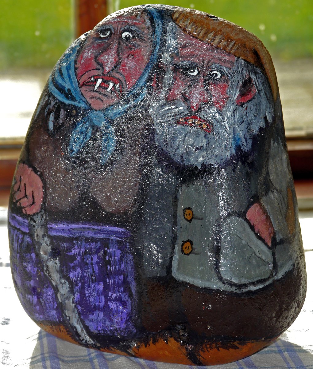 „Schuld“ an allem ist die gräßliche Hexe Grýla, eine böse Gesellin, die mit ihrem kaum freundlicheren Trollmann Leppalúði im Hochland in einer verborgenen Felsenhöhle lebt. Sie geht zu Weihnachten um und sammelt die bösen und faulen Kinder in ihrem Sack, um sie in ihrem großen Topf fressfertig zu kochen. Die braven und fleißigen Kinder darf sie nicht anrühren – und wenn sich ein Kind schon im Topf rechtzeitig besinnt und brav wird, kann es noch entkommen. (Holzhammer-Pädagogik, ich hör‘ dir trapsen… Immerhin ist es Islands Eltern schon seit dem 18. Jahrhundert untersagt, ihre Kindern mit Schauergeschichten zu Erziehungszwecken zu erschrecken!)