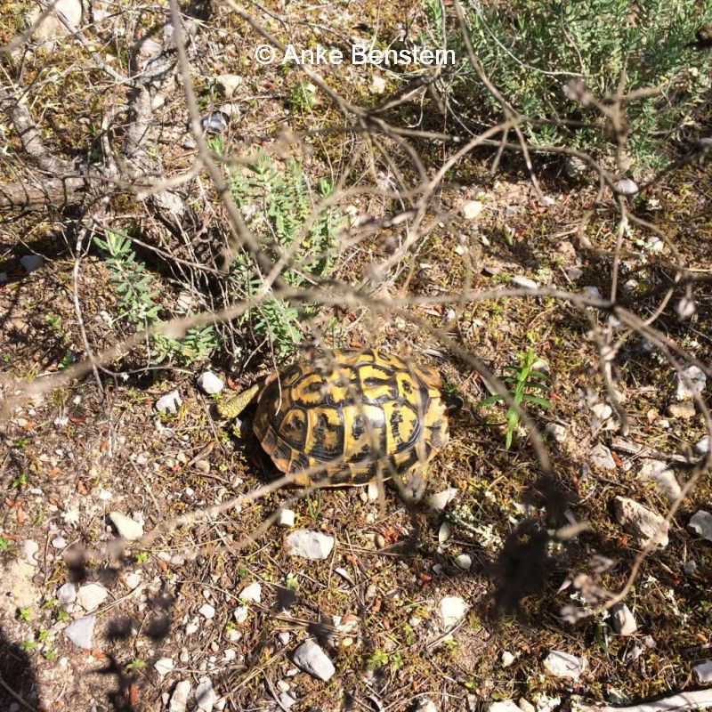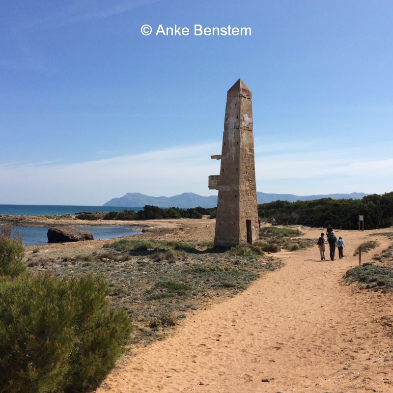 Und dann wartet auch noch ein kleines, stilles Highlight am unverbauten Natur-Sandstrand und in den letzten erhaltenen, herrlich duftenden Dünenwäldern bei Ca´n Picafort: Erst bestaunen wir alte Steingräber direkt am Wasser und zählen die skurrilen Küsten-Obelisken, dann kommen Pferde vorbei und zu guter Letzt kriecht zum großen Entzücken meiner Tochter auch noch eine wilde Schildkröte zwischen dem blühenden Rosmarin am Wegesrand entlang…