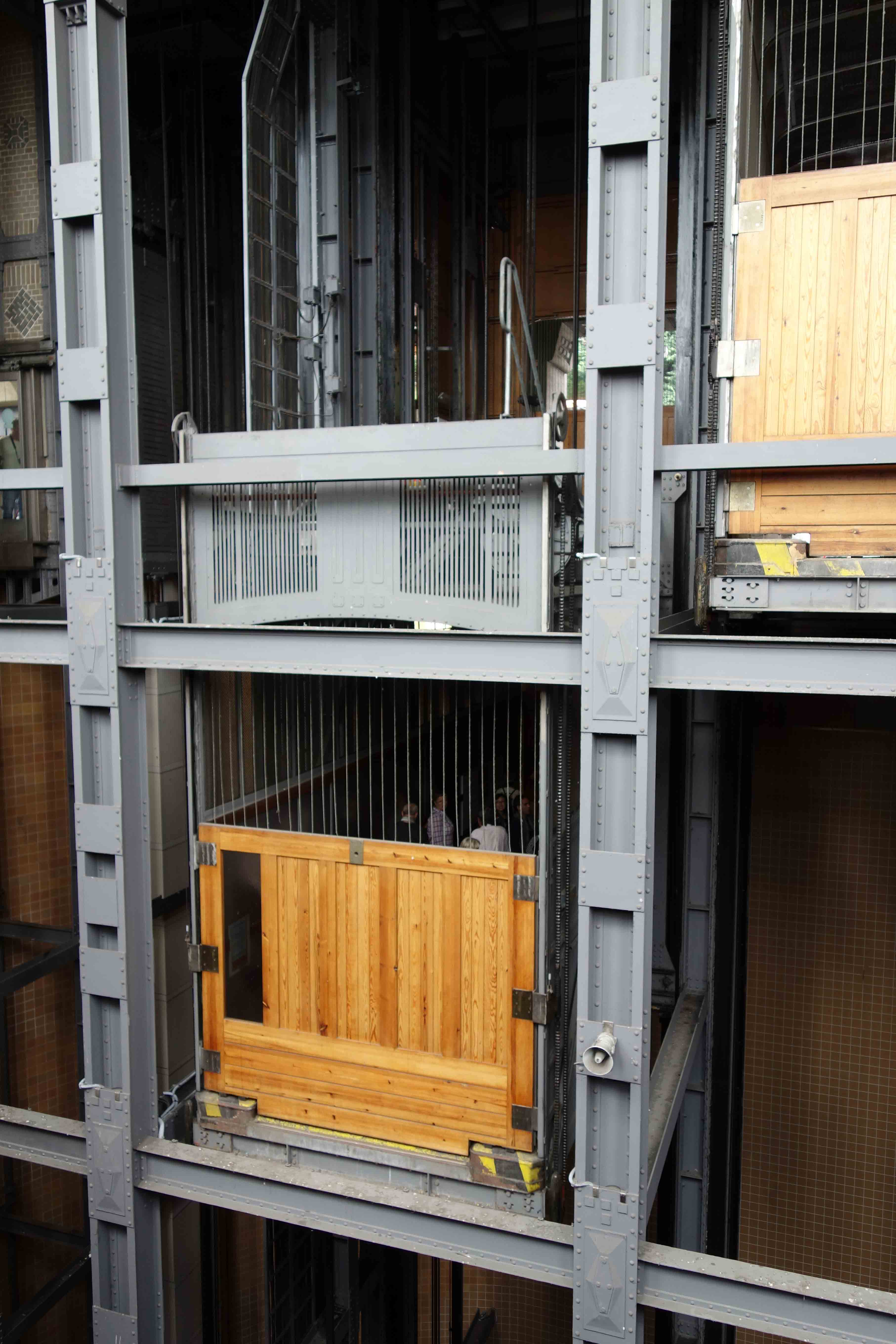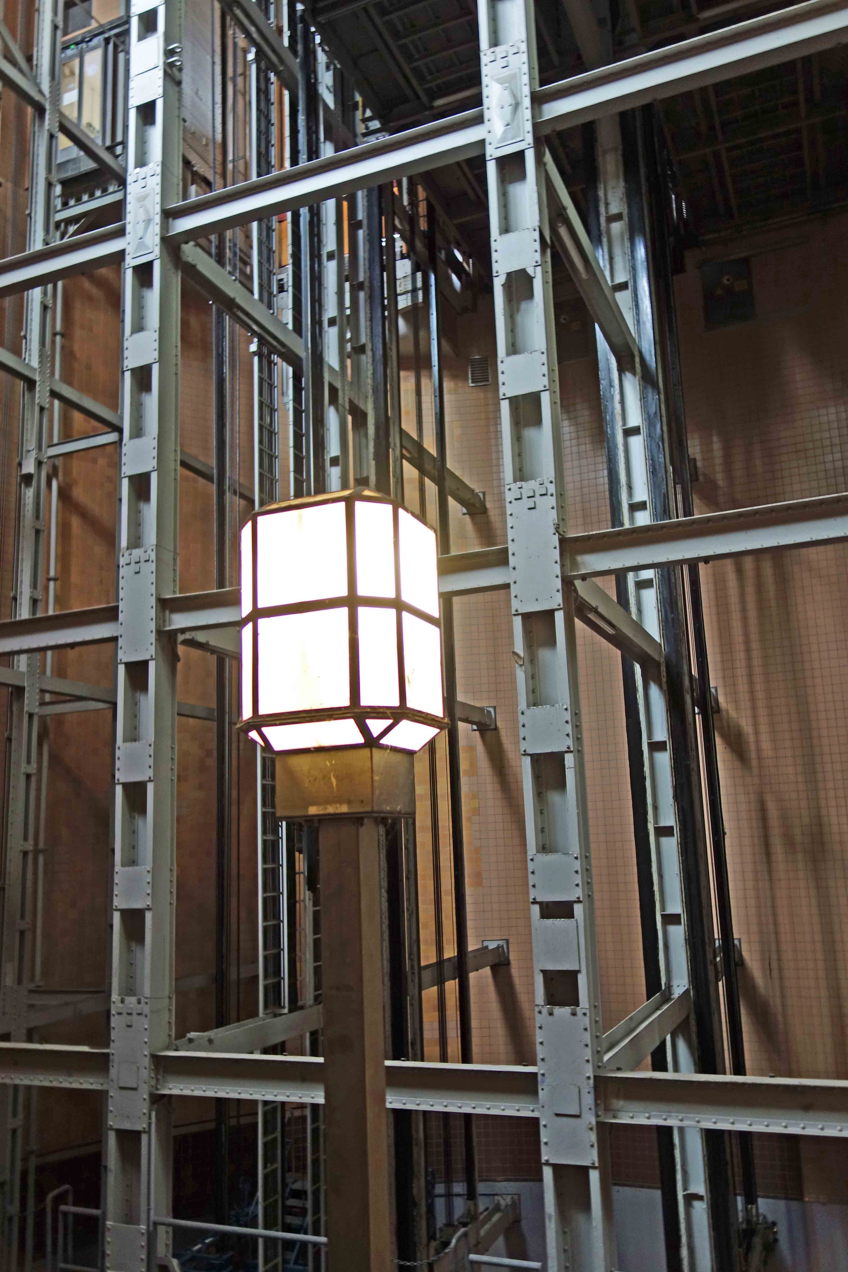 Technik kann so schön und mit viel Liebe zum Detail sein: Laterne vor den Aufzügen im Alten Elbtunnel