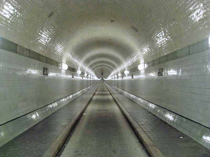 Architekt Otto Wöhlecke, der auch die Landungsbrücken entworfen hatte, wollte nicht nur eine technische Meisterleistung schaffen, sondern diese sinnlich auch erlebbar machen und so auch technisch Unversierten nahe zu bringen. Er wollte Technik und Schönheit vereinen und das ist gelungen. Nach vier Jahren Bauzeit wurde der Alte Elbtunnel mit großem Brimborium im September 1911 eröffnet. Er war erste Unterwassertunnel Europas und eine Sensation. Knapp 4500 Arbeiter räumten mit Schaufeln Steine und Modder unter der Elbe weg, damit der hydraulisch betriebene Bohrer den Tunnel graben konnte, den Männer sogleich mit Stahlteilen abstützten.