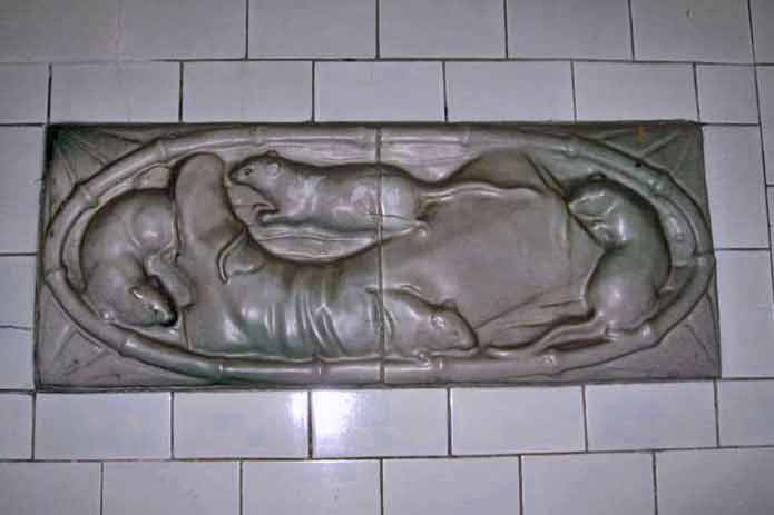 Und der Alte Elbtunnel ist kein Vergleich zum neon-gelben Staumoloch der neuen Elbröhren. Die alten sind hell gekachelt, sehr sauber und einladend. Die Wände sind mit Reliefs geschmückt, die Fische und anderes Meeresgetier zeigen, aber auch Ratten und Arbeitsstiefel. Insgesamt ist die Strecke 426,5 Meter lang, also ein kurzer Spaziergang.