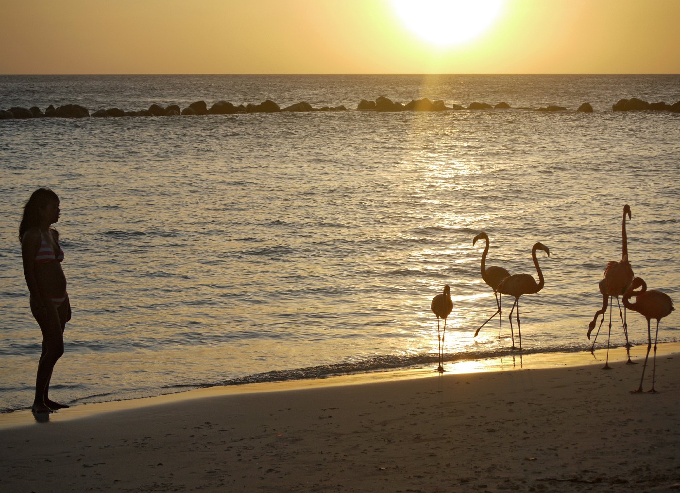 Und die Strände sind legendär. Nur 31 Kilometer ist die schmale Insel lang, die kleinste der drei ABC-Inseln, aber fast rundherum ist heller Sand. Der Eagle Beach etwa wird regelmäßig unter die schönsten Strände der Welt gewählt. Und der Flamingo Beach auf Renaissance Island ist nur per Boot erreichbar, und nur für Gäste eines großen Hotels in Oranjestad: Das Boot startet mitten in der Hotellobby und tuckert direkt dorthin, wo die langbeinigen Vögel neben den Badenden durchs warme Wasser waten.