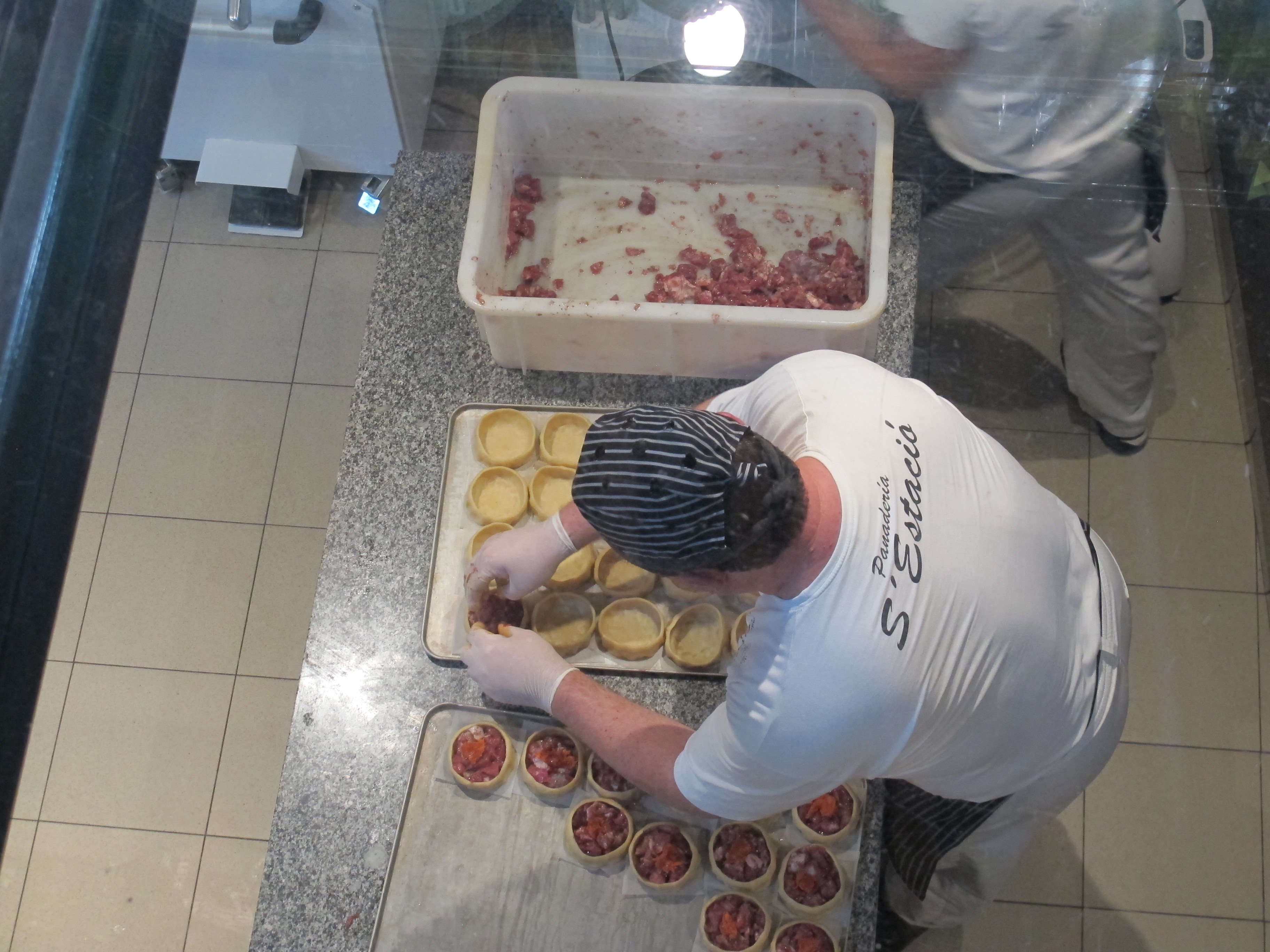 Zurzeit werden die Empanadas dort in Massen hergestellt. Die Panades sind eine Art kleine Körbchen aus einem Teig aus Mehl und Schweinebutterschmalz, der salzig oder süß sein kann. Bäcker Juan Jaume, der schon seit 20 Jahren hier arbeitet, bereitet die Panades mit Lamm, Schwein oder Fisch, mit grünen Erbsen und würziger Sobrasada-Wurst zu. Juan erklärt: „Während der Karwoche essen viele der älteren, sehr religiösen Menschen zwar kein Fleisch. Doch diese Tradition ist bei den Jüngeren oft schon längst in Vergessenheit geraten.“ Lecker sind die Empanadas con carne allemal!