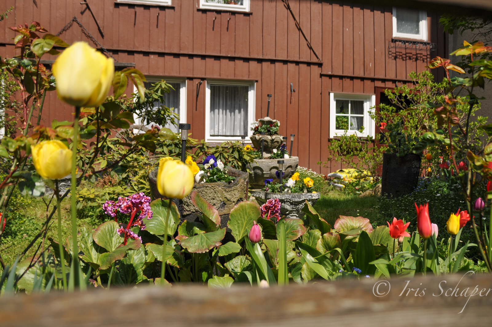 Wer an Grün in der Stadt denkt, hat wahrscheinlich eher die „offiziellen“ wie den Römischen Garten, den Pfalzgarten oder auch den Brunnengarten im Sinn. Die liebsten sind mir jedoch die Hinterhofgärten, die Ihr entdeckt, wenn Ihr Euch einfach durch der Altstadt treiben lasst, manche davon adrett mit englischem Rasen, andere im klassischen Bauerngartenstil. Verbunden mit der Kulisse aus alten Fachwerk- bzw. Holzhäusern hat das einfach Atmosphäre und macht Freude beim Anschauen…