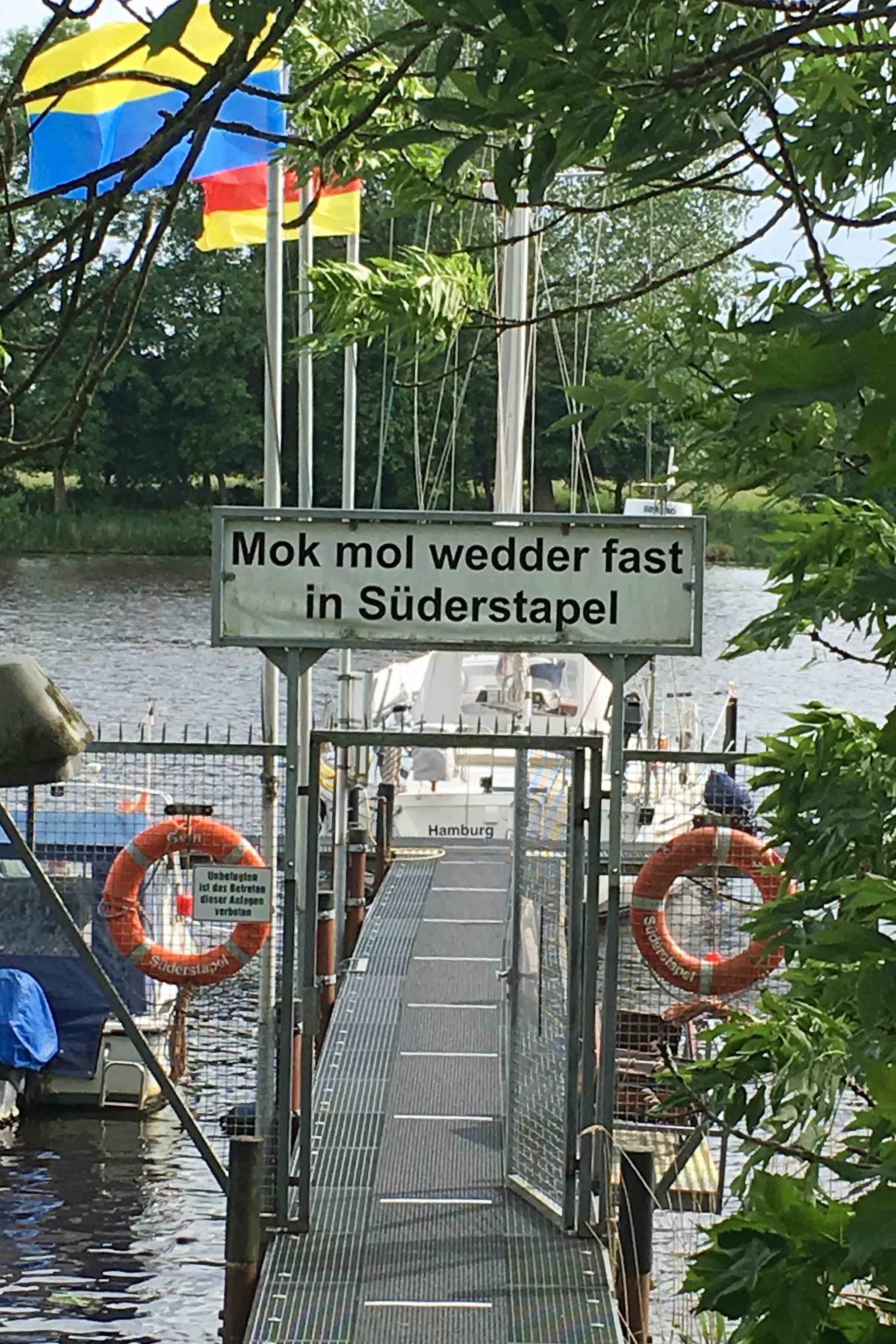 Wasser quietscht in meinen Sandalen und ich zurre die Kapuze gegen die Schauerböen fest. Der Wettergott meint es nicht gut mit uns. Von wegen, wenn Engel reisen. Meine Freundin Suse und ich haben uns zu einem Mädels-Wochenende auf einem Hausboot auf der Eider verabredet und mein sechsjähriger Sohn Freddie darf auch mit. „Nordseewetter halt“, knurrt Ingo, unser Vermieter, der uns im Ferienpark Süderstapel begrüßt, „ist gleich vorbei und die Sonne kommt wieder“, verspricht er und schließt die Tür zur Steganlage auf. „Ihr habt den Hecht“, erklärt er und reicht uns die Schlüssel.