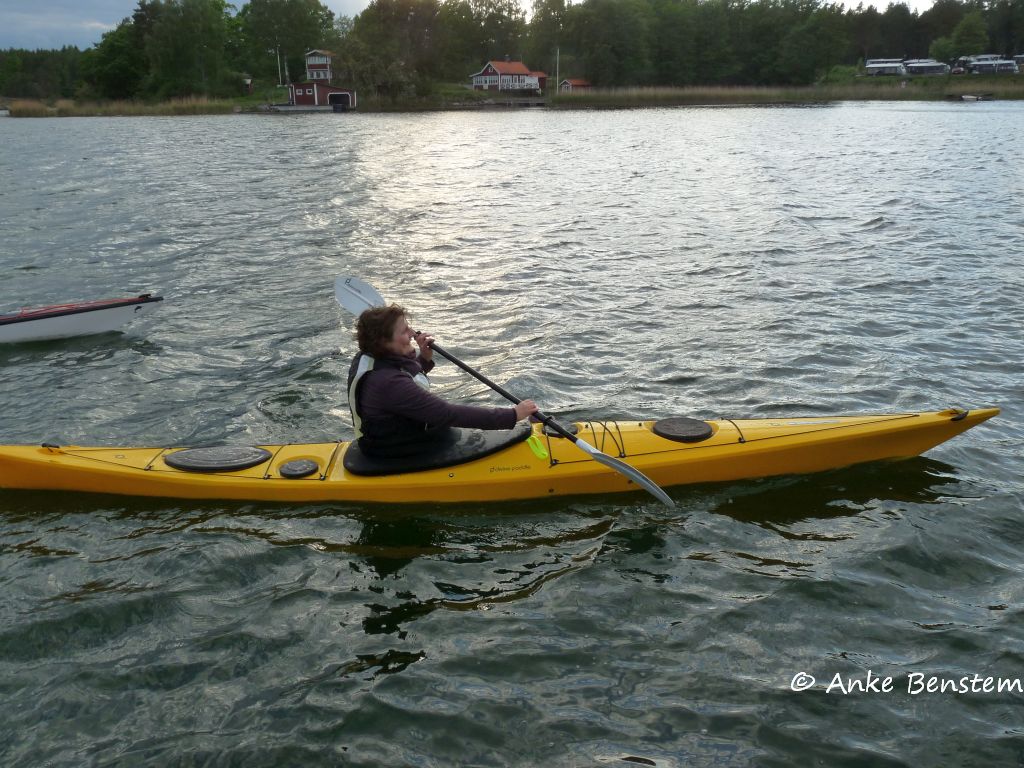 Christian vom Kustcamp Ekön Gryt südöstlich von Valdemarsvik wartet schon. Überall auf der Wiese am Ufer und auf Gestellen lagern seine bunten Seekajaks, leuchten rot, gelb und grün – mehr als 60 Stück verleiht er. Auf einer Leine zwischen Bäumen trocknen Schwimmwesten. Man kann hier fast das ganze Jahr über kajaken und im Winter meistens Eisskaten. Für mein Geschmack ist paddeln im Sommer aber definitiv schöner. Und so geht es (nach einer Tasse Begrüßungskaffee) gleich los: Zelte und Essen einpacken, ein passendes Kajak suchen, rein ins Wasser. Einmal um die Ecke gebogen, und schon sind wir mittendrin im Schärengarten von Östergötland mit seinen großen und kleinen Inseln, von denen manche nur wie hingestreut felsige Erhebungen im Wasser sind.