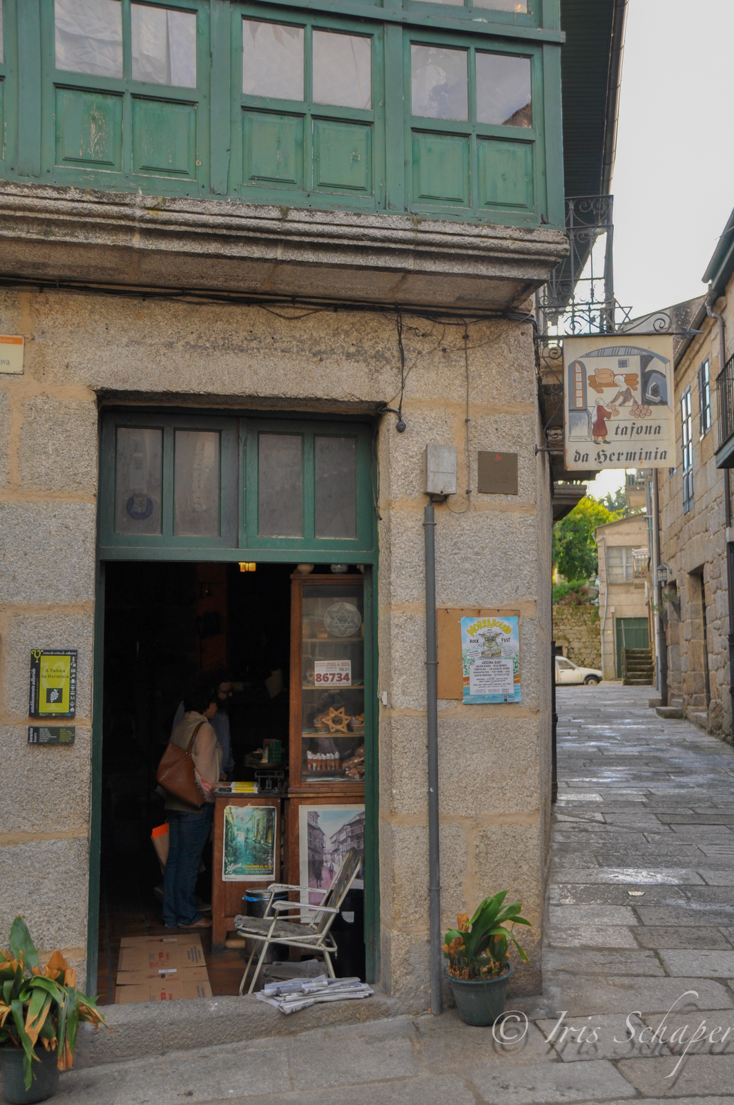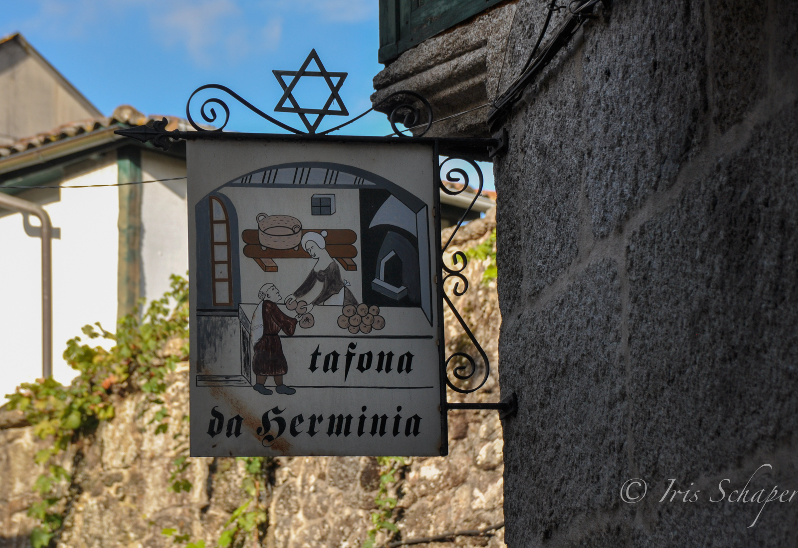 Wir nähern uns aus einer Seitengasse dem kleinen Ladengeschäft, auf dessen Schild mit der Aufschrift „Tafona da Herminia“ ein Davidstern prangt. Eine alte Dame sitzt gerade auf einem Stuhl neben der Eingangstür und hält einen Schwatz mit der Nachbarin. Mit einem schalkhaften Grinsen erhebt sich Herminia Rodríguez und bittet uns herein. „Herzlich willkommen“, sagt sie, öffnet die zweiflügligen Türen zu ihrer Schatzkammer, dem alten Holzschrank hinter dem Tresen. „Was möchten Sie als erstes probieren?“