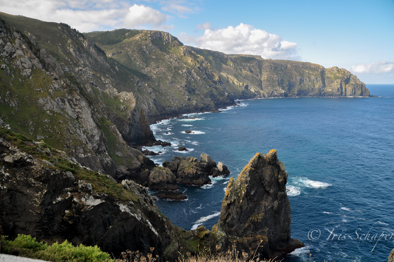 In der dunklen Jahreszeit brandet der Atlantik gegen die wilden Klippen der Costa da Morte, der Küste des Todes. Das tosende Wasser hat im Laufe der Jahrtausende Felsnasen aus dem Wasser herausgefräst. Für die Römer war diese Region „Finis Terrae“, das „Ende der Welt“. Im Norden grasen noch wilde Pferde auf den windumtosten Hochebenen. Zum Meer hin fällt die Serra da Capelada in atemberaubenden Steilhängen ins Meer. An den tückischen Felsnasen im Meer haben so viele Seefahrer ihr Ende gefunden, dass es hier sogar englische Friedhöfe gibt.