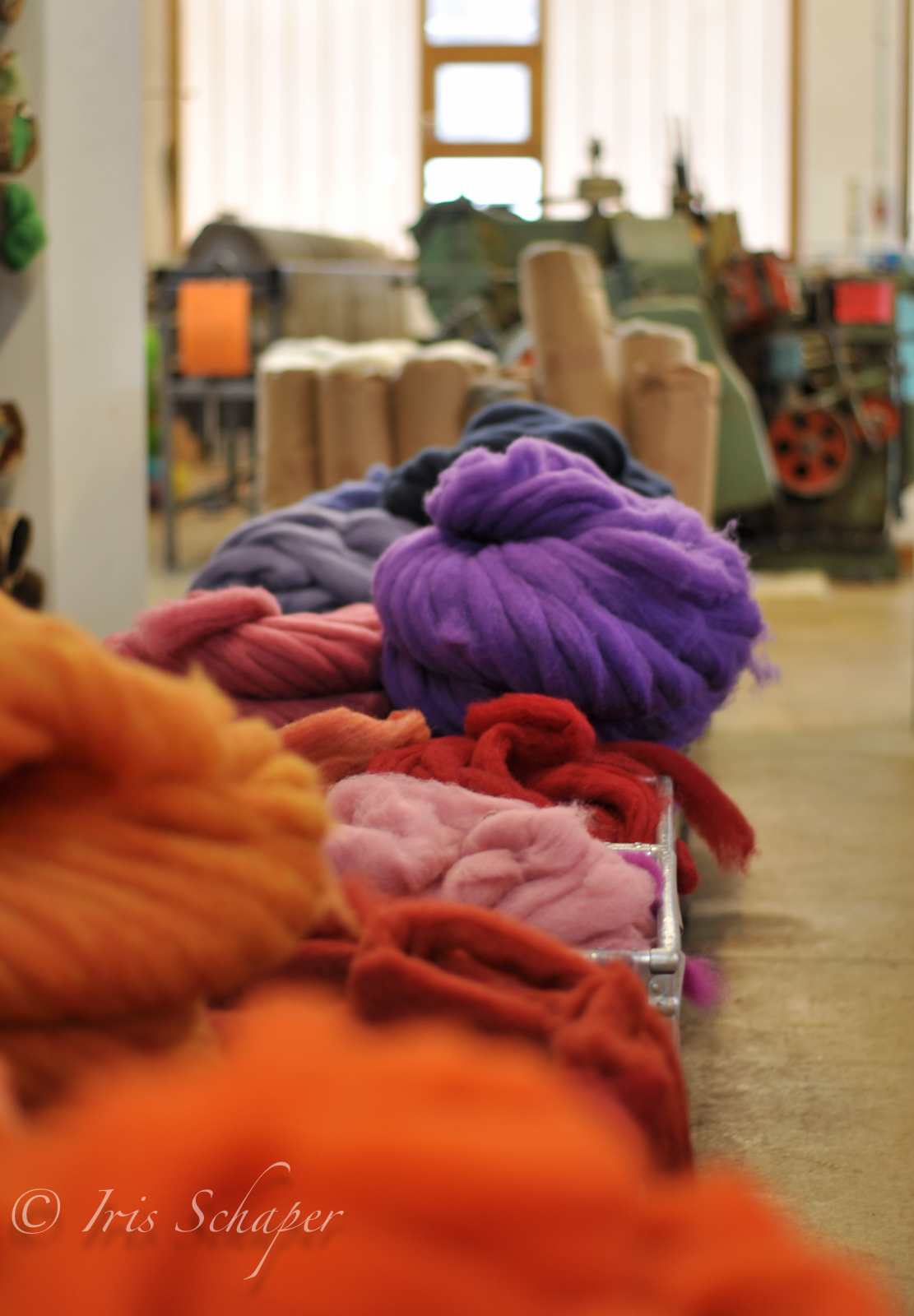 Und die bezieht sie wo? In Österreich natürlich! Idoia erzählt uns, dass es die dicken Schafwoll-Stränge, mit denen sie arbeitet, nur dort in dieser Qualität gebe.