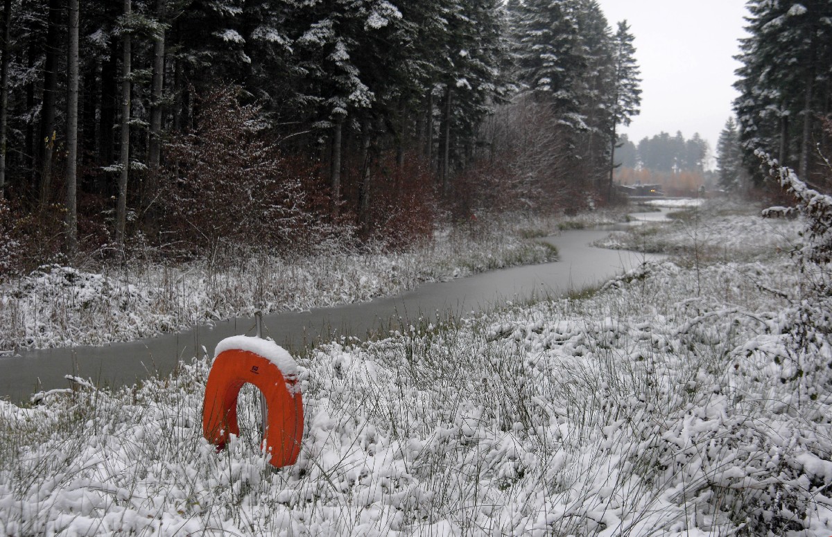 Es ist schon dunkel, als wir im Schneetreiben durch kleine französische Dörfer zum Parkeingang gondeln. Dort gibt es Schlüssel und Nummer der Hütte, die wir dann auf dem waldigen Gelände suchen – zweimal zeigen sich Rehe im Scheinwerferlicht. Endlich gefunden, schnell ausladen, dann das Auto „stilllegen“ auf dem Parkplatz ein Stück entfernt. Aha?
