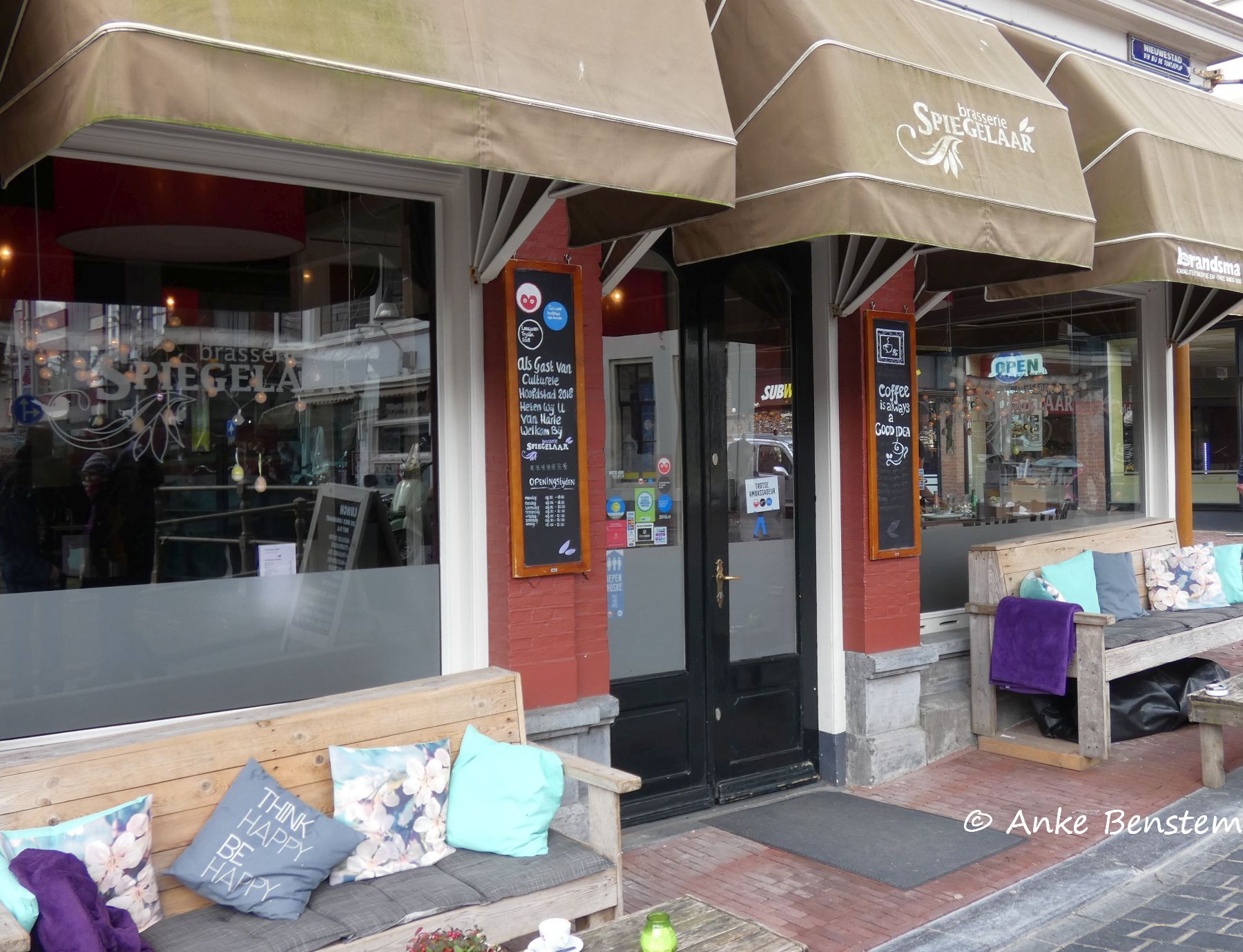 Kaffee trinken mit Ausblick: Brasserie Spiegelaar, Nieuwestad 141, https://brasseriespiegelaar.nl/