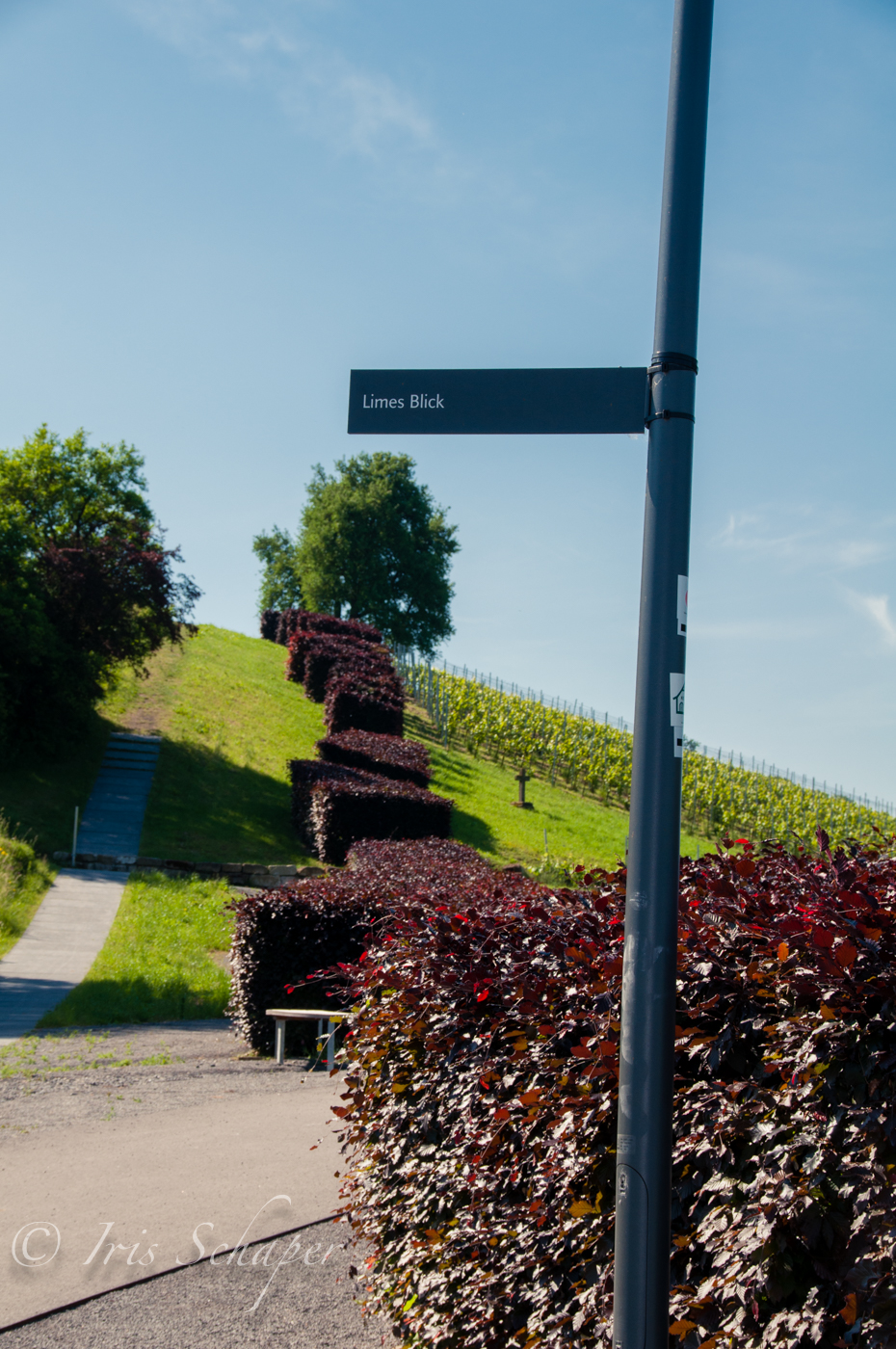Zum Glück klappt nicht immer alles wie geplant. Wie sich herausstellte, war der von uns anvisierte, nagelneue Stellplatz in Öhringen noch gar nicht eröffnet (Nachtrag: inzwischen schon!). Also musste schnell eine Alternativlösung her. Auf den Seiten der Stadt fanden wir dann den Wohnmobilstellplatz an der Reithalle. Eigentlich eine Notlösung. Aber dann stellte sich heraus, dass hier in der Cappelaue vor zwei Jahren die Landesgartenschau stattfand. Und das Gelände rund um den einstigen Limes (der übrigens mit einer dunklen Hecke nachempfunden wurde) ist heute ein wunderschönes Naherholungsgebiet. In den Gewässern der Cappelaue quaken die Frösche, die Bienen vom örtlichen Imkerverein summen. Aus den Beeten duftet es nach Blumen und Kräutern. Allein der riesige Abenteuerspielplatz hat den Kindern super gefallen, sogar unser 15-Jähriger fühlte sich noch animiert, herumzuturnen. Gleich nebenan steht die Hohenloher Scheune, in der rustikales Essen und Wein aus der Region gibt, richtig idyllisch!