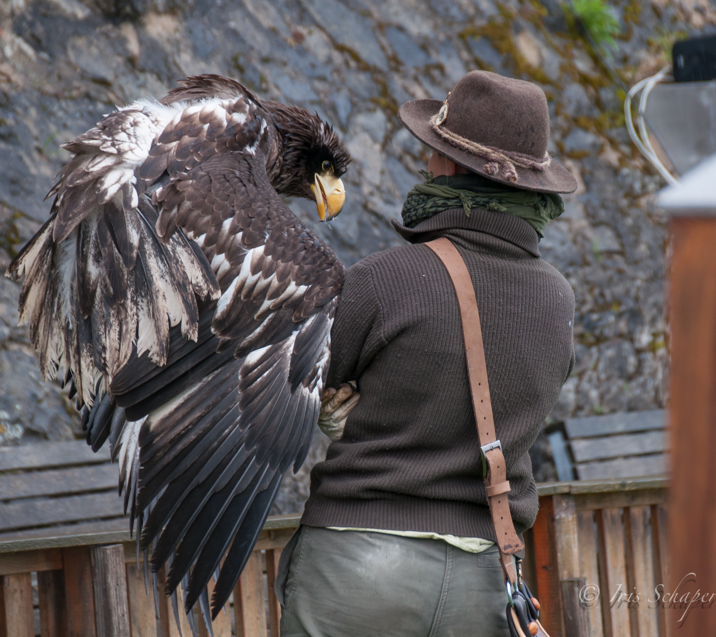 Ja, stimmt, ich durfte auch kurz einen Uhu mit einem größeren Handschuh halten, da musste ich dann mit der zweiten Hand nachstützen. Ich vermute, Falkner bekommen mit der Zeit ordentlich Bizeps 😉