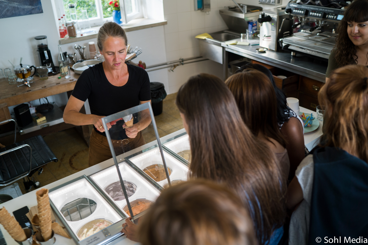 Und wo wir gerade beim Essen sind: Das Heumilcheis hier aus der Manufaktur fanden wir tatsächlich zum Niederknien. Mein persönlicher Favorit war „Karamell Fleur de Sel“, mein Jüngster schwärmt heute noch vom Vanille-Eis. Und die beiden Macher sind Dokumentarfilmer. Wie kommt man dann auf eine solche Idee? „Dass das Schloss einer bäuerlichen Erzeugergemeinschaft gehört, hat uns gleich gefallen“, erzählt Nina Sohl.