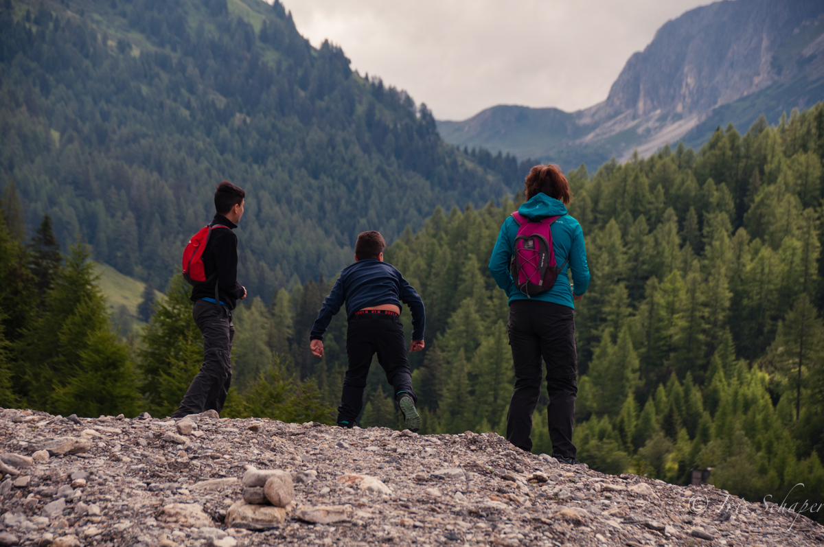 Jedes Mal, wenn hier ein Unwetter alles mit sich reißt, hinterlässt es am Bachlauf eine riesige Menge an Steinen. Klingt erstmal langweilig. Aber wenn ich an diese Wanderung zurückdenke, erinnere ich mich vor allem an meine drei „Männer“ (von denen einer offiziell erwachsen ist) – mit Steinen in der Hand.