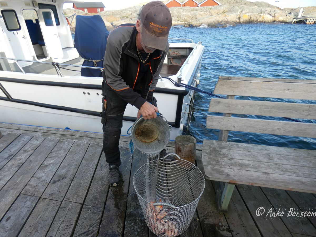 Noch eine Idee für eine passende Aktivität: Freunde von Seafood können von den Wetterinseln zu einer Hummersafari starten. Dazu bekommt man einen wetterfesten Overall an und los geht’s. Kaum sind wir raus aus dem Naturhafen, an dem das Wirtshaus liegt, schaukelt das Boot immer heftiger in den Wellen. Schnell ist klar, die Sache ist definitiv nur etwas für Seefeste… ich bin da leider raus. An der richtigen Stelle angekommen, werden die Fangkisten mit Hilfe langer Schüre und einer Kurbel vom Meeresgrund geholt, geleert und mit ziemlich stinkendem Fisch als Köder wieder hinabgelassen.