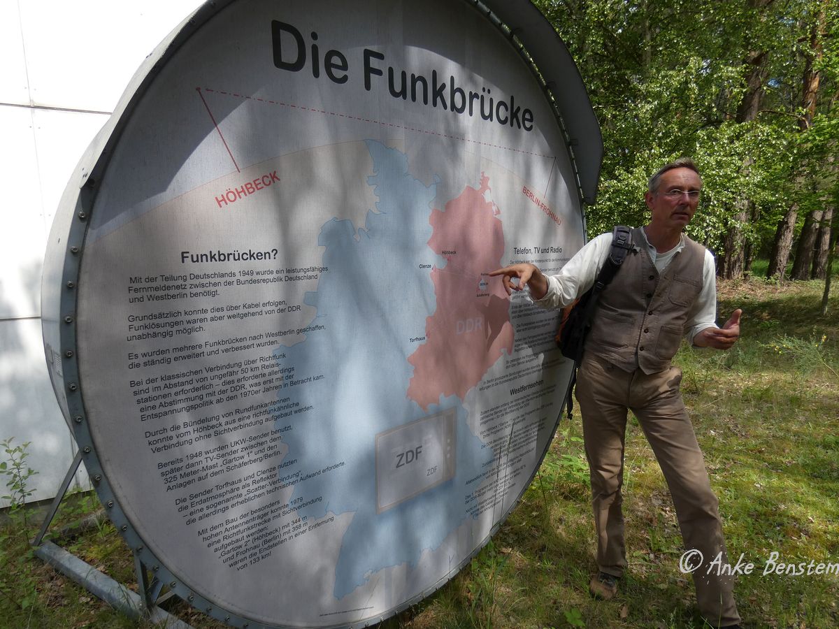Und das, obwohl die Gegend auf den ersten Blick durchaus wenig naturnah, ja sogar ein wenig Lost Place-mäßig wirkt: Ein riesiger rot-weißer Sendemast ragt in den Himmel, wenn man sich dem Höhbeck nähert, der 344 Meter hohe Funkbrückenturm Gartow 2. Der in den 1970er Jahre errichtete und bis heute höchste Funkturm Deutschlands versorgte zu DDR-Zeiten bzw. während des Kalten Krieges West-Berlin mit Telefon und Fernsehen: mit der so genannten Funkbrücke. Heute wird noch der Deutschlandfunk darüber versendet, ansonsten nutzt ihn die Wissenschaft: Die TU Braunschweig misst damit in großer Höhe den Wind. Und nicht nur der Funkturm und weitere skurrile, alte Maschinen und Anlagen erinnern an früher.