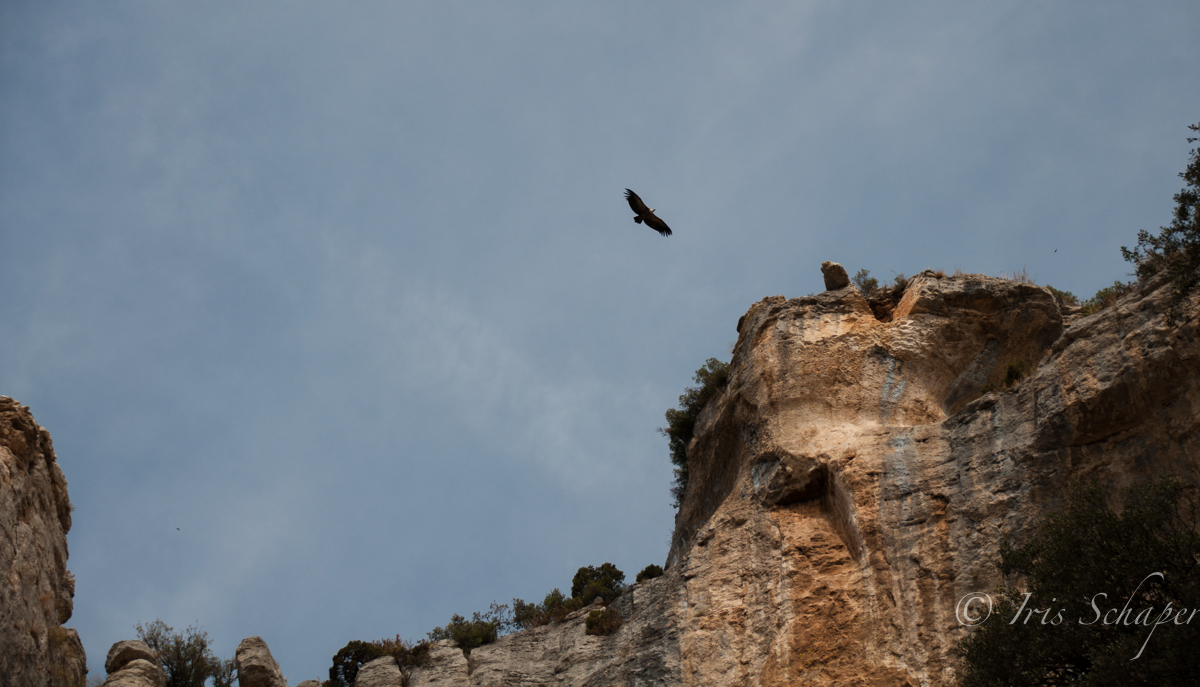 Gänsegeier kreisen über die Schlucht, nutzen die Thermik der steilen Felswände. Sie sind ein ständig wiederkehrendes Thema auf unserer Reise. Auch in den Pyrenäen sind sie uns schon begegnet, immer auf der Suche nach verendeten Schafen. „Wenn morgens nur zwei kreisen, ist das nichts Besonderes“, hatte uns Fernando dort oben erklärt. „Aber wenn ich ankomme und da oben kreisen mehr, weiß ich: Es gibt ein Problem.“ Bis in die Bardenas Reales werden die Geier ein Thema bleiben.