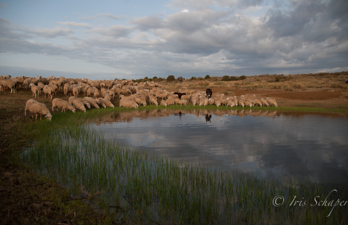 Wenn die Schäfer „El Paso“ erreicht haben, den Durchgang zum Biosphärenreservat „Las Bardenas Reales“, sind sie schon fünf Tage unterwegs. Als erstes suchen daher viele Schafe die Wasserstelle auf.