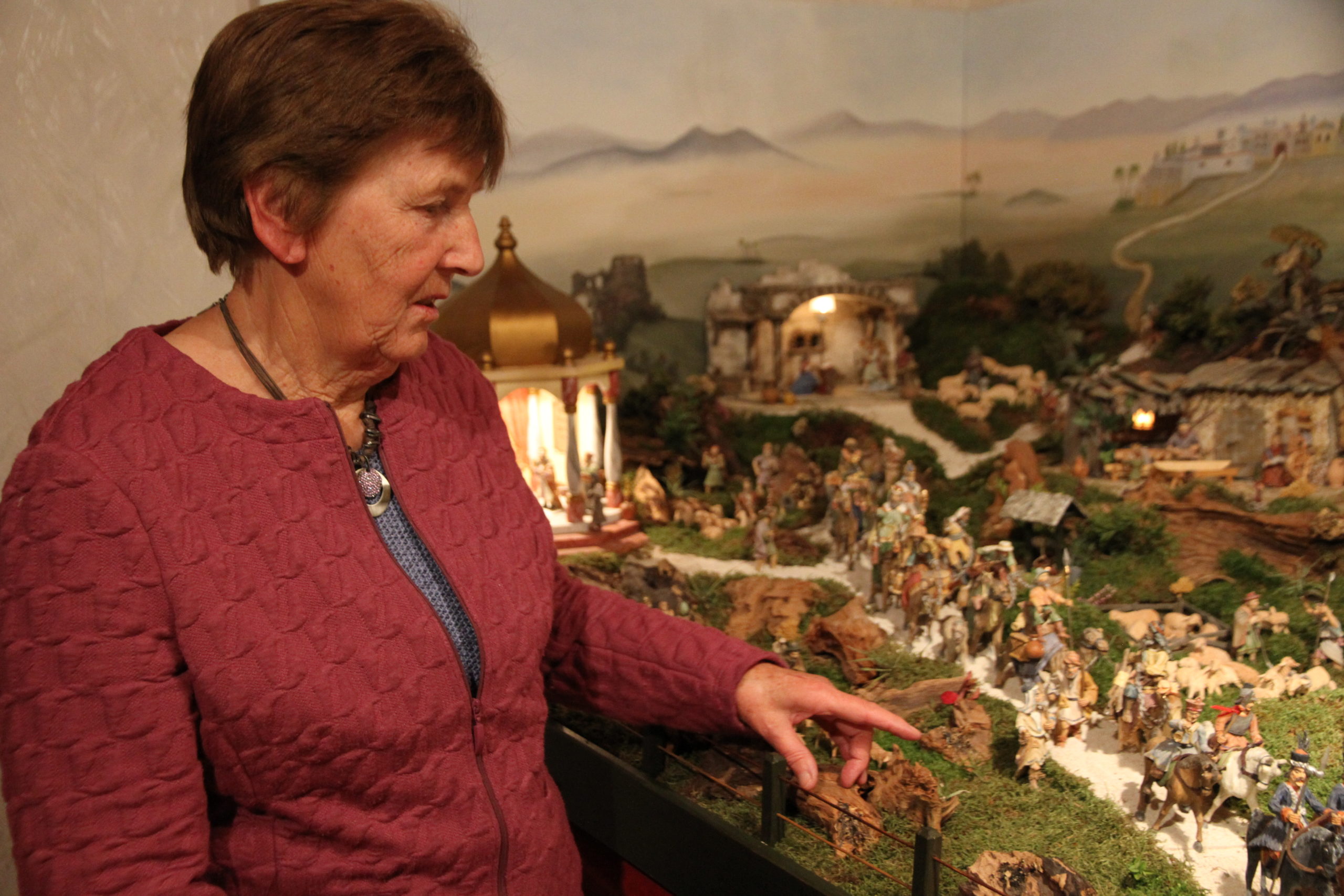 Die älteste Krippe stammt von 1820 aus dem Biedermeier in Oberammergau und die jüngste aus 2018. Sie reichen von Papierdarstellungen über geschnitzte rohe und gefasste Figuren, von „Bachenen“ (aus Ton) bis hin zu den „Eigschläfte“, den Angezogenen. Der jüngste Schnitzer, Tobias, ist gerade mal sieben Jahre jung, der Älteste 82 Jahre. Teilweise stehen in einer Krippe bis zu 100 Figuren, in anderen kleine Gruppen, die sich nur um das Wichtigste kümmern: die Geburt Jesu.