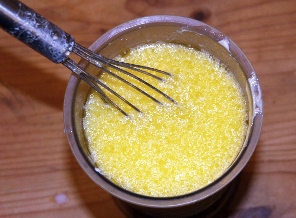 Schloss Selsø verrät mir außerdem mehr über die Zubereitungsweise, nämlich erst Sahne/Milch und Butter warm machen und mischen, nicht heiß!, dann Mehl und dann Eier dazuschlagen. Vorher aber etwas warme Milch abzweigen und “so viel Hefe wie eine große Walnuss hinein”. Also eine Walnussgröße für ein Pfund Mehl, passt ja. In der warmen Milch auflösen und dann in den Teig rühren.