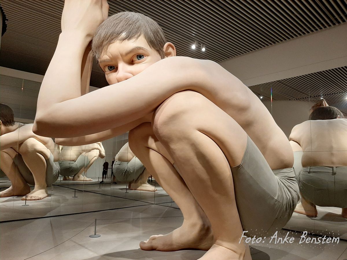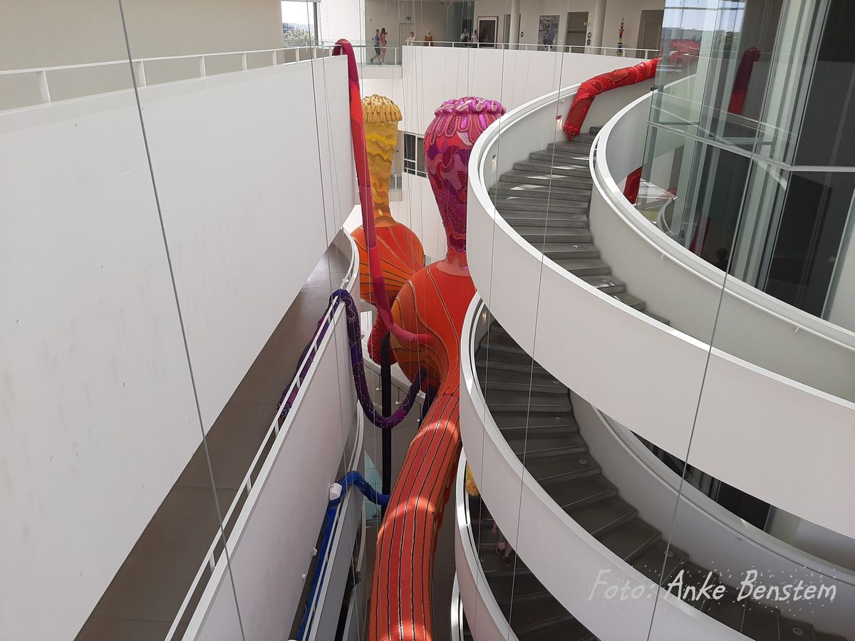 Mit dem berühmtesten Kunstwerk des ARoS, der fast fünf Meter großen Skulptur „Boy“ vom Australier Ron Mueck in Etage 6 kann ich hingegen nicht viel anfangen. Dafür gefällt mir die schlichte und doch irgendwie organische Architektur mit ihrer dominanten, offenen Wendeltreppe umso besser. Fazit: Ein Stopp in Århus lohnt sich – auch wenn ich von der Stadt selbst wegen der Hitze so gut wie nichts gesehen habe. Also nochmal wiederkommen.