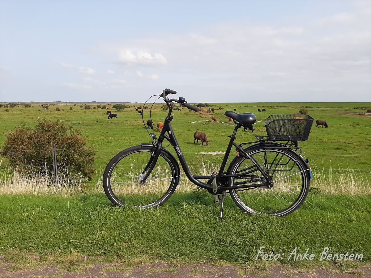 Auf Borkum fährt man Rad. Nicht nur die Insulaner, auch die Touristen gondeln gemütlich meist mit 7-Gang-Rädern durch den Ort und über die Insel. Ideal dafür ist, dass es wenig Autoverkehr und viele Radwege gibt. Etwas ungünstig sind die manchmal kopfsteinpflasternen Straßen und Wege, die obendrein ziemlich buckelig sind – was am sandigen Untergrund liegen mag. Und dass der Wind mindestens einmal von vorn kommt, sei es beim Hin- oder beim Rückweg. Aber davon abgesehen ist Radfahren auf Borkum sehr zu empfehlen. Vor allem ins Ostland, also dem Osten der Insel mit seinen weiten Dünenflächen.