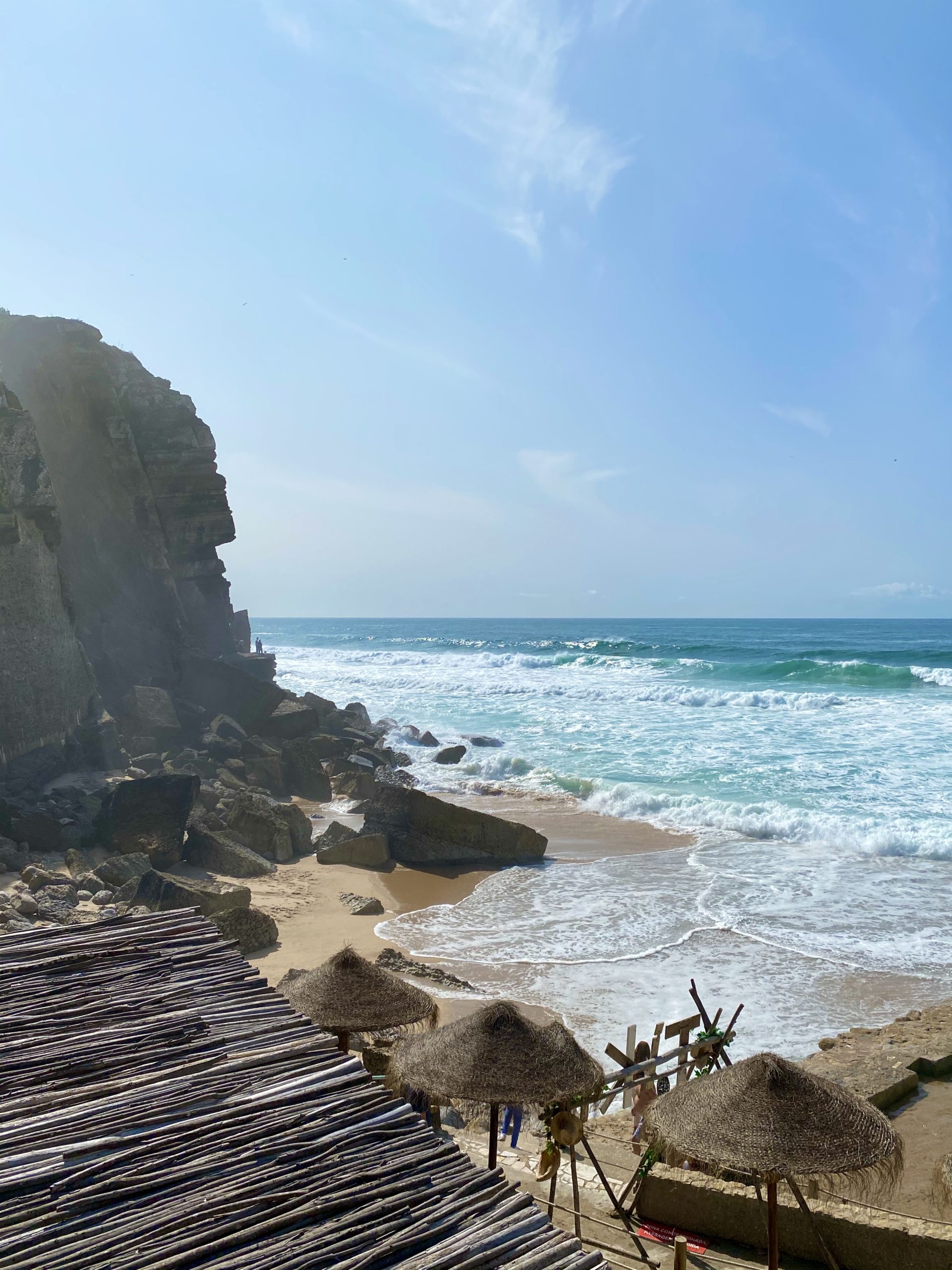 Spielplatz Nummer eins: die endlosen Strände in Azenhas do Mar und der näheren Umgebung mit ihren Felsen, steilen Klippen, toller Brandung. Keine fünf Minuten von unserer Unterkunft, dem Casa das Arribas, entfernt, geht’s die Stufen extrem steil bergab (mit Seil-Begrenzung), runter an die Bucht Praia da Aguda. Ein Riesenabenteuer für unsere Jungs, die Treppenstufen sind rutschig, aber wir kommen Gottseidank heil unten an. Ein menschenleerer Strand, traumhaft wild und rau, tolle Belohnung … Die Jungs rennen los und jubeln! Besonders nett ist auch die Praia da Adraga in Almocageme, eine eher romantisch-überschaubare Beach zwischen hohen Felsklippen, einem charakteristischen Felsbogen auf der linken Seite und….