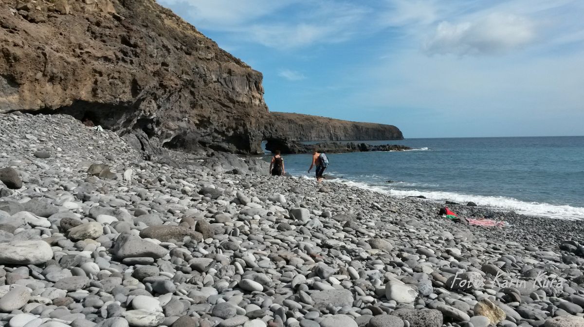 Am Ende ging diese Wanderung gut aus, ich fand über den Flusslauf in der anderen Richtung einen Weg zurück zur Straße. Danach war natürlich ein relaxten Tag am Strand fällig. Und Strände gibt es viele auf La Gomera. Allerdings muss man sich auch hier mit Steinen anfreunden, feine Sandstrände wird man vergeblich suchen. In netten Strandbars sitzt man in Orten wie Playa Santiago oder im Valle Gran Rey. Legendär im Valle Gran Rey ist übrigens das abendliche Meeting am Strand, da wird der Sonnenuntergang mit Trommeln zelebriert.