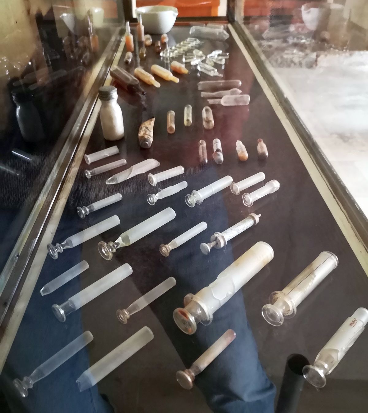 Über den grau-gelblichen Steinhäusern thront ein großes, lang gestrecktes Gebäude. Es ist das ehemalige Krankenhaus. Ein Arzt kam jede Woche, versorgte offene Wunden, Geschwüre und behandelte Verstümmelungen an den Gliedmaßen. Im kleinen Museum sind Spritzen und Ampullen, verrostete Metall-Schüsseln und schaurige OP-Instrumente ausgestellt.