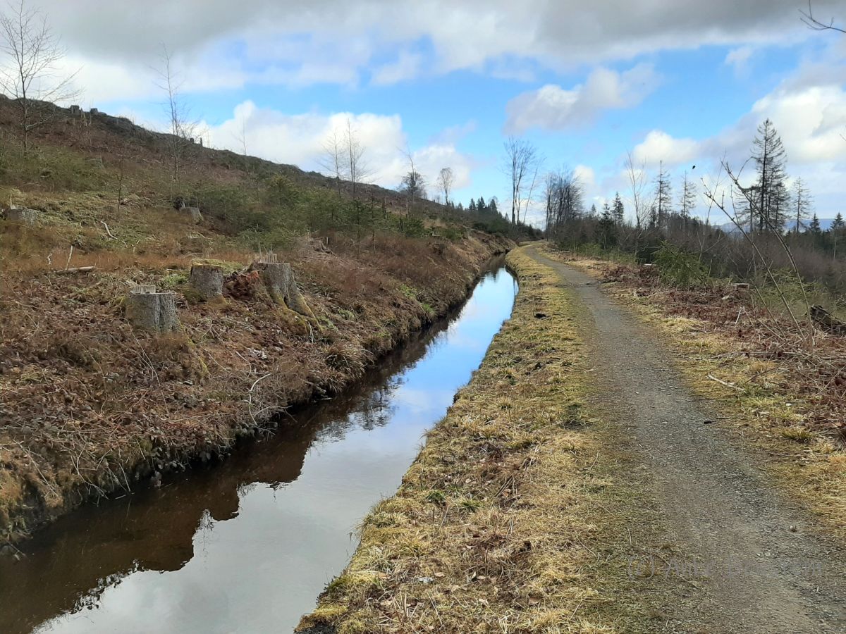 Doch um den Waldwandel geht es auf der Runde nicht, zumindest nicht vorrangig. Ausblenden lässt er sich natürlich aber auch nicht. Er ist einfach präsent im Harz. Vorbei an einer alten Radstube geht es nun weiter zum Polsterthaler Teich, einem der 107 künstlich angelegten Wasserspeicher im Oberharz. Über den Damm, anschließend einen Forstweg bergauf führt der Weg. Bald fließt seitlich Wasser aus einem unterirdischen Graben ans Tageslicht, an dem entlang sich der Weg nun zurück zum Polsterberger Hubhaus führt.