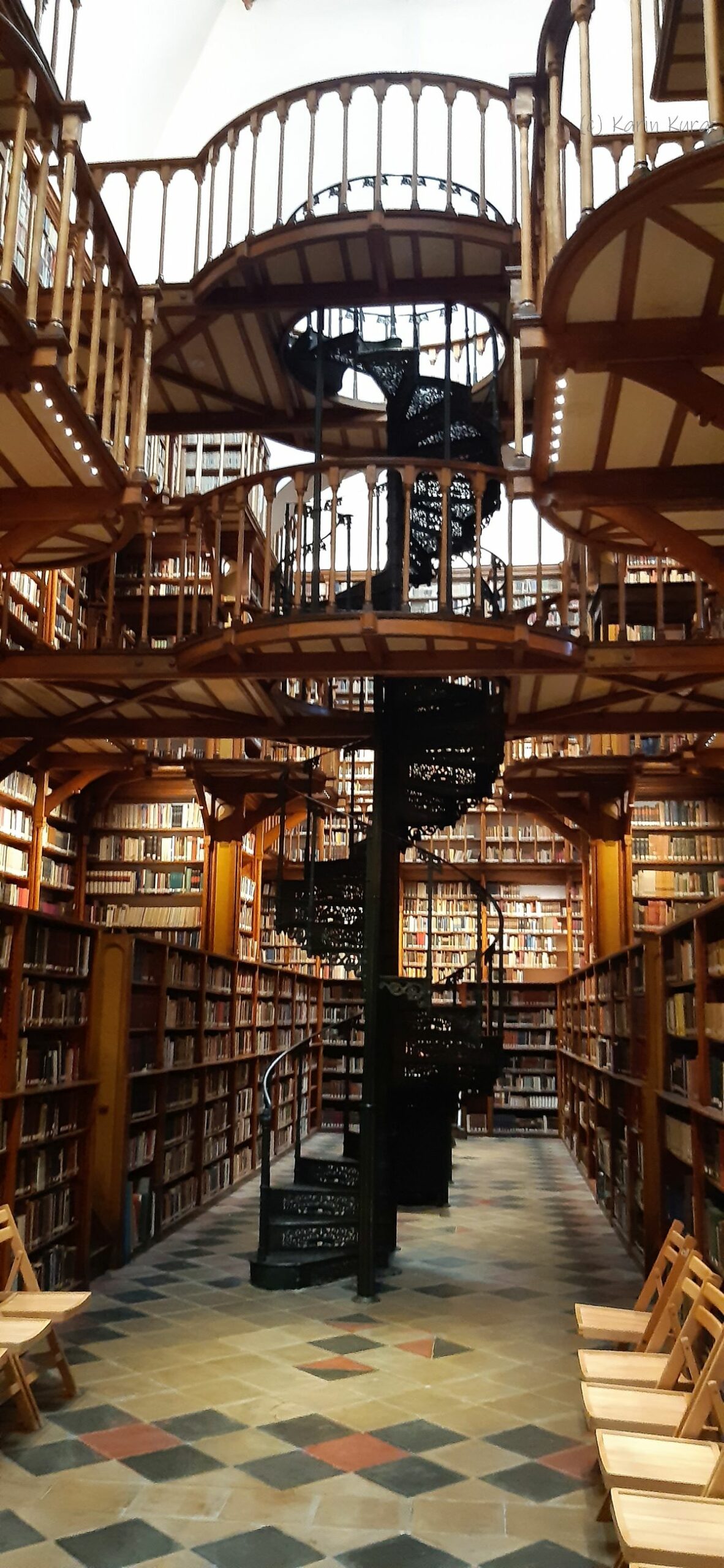 In der sechstürmigen romanischen Basilika lauschen wir mittags gegen zwölf den gregorianischen Gesängen der Mönche. Im Kloster leben, beten und arbeiten derzeit 35 Mönche. Es gibt eine wunderschöne alte Bibliothek mit Wendeltreppe in der Mitte, da denkt man sofort an Harry Potter und die Bibliothek von Hogwarts.