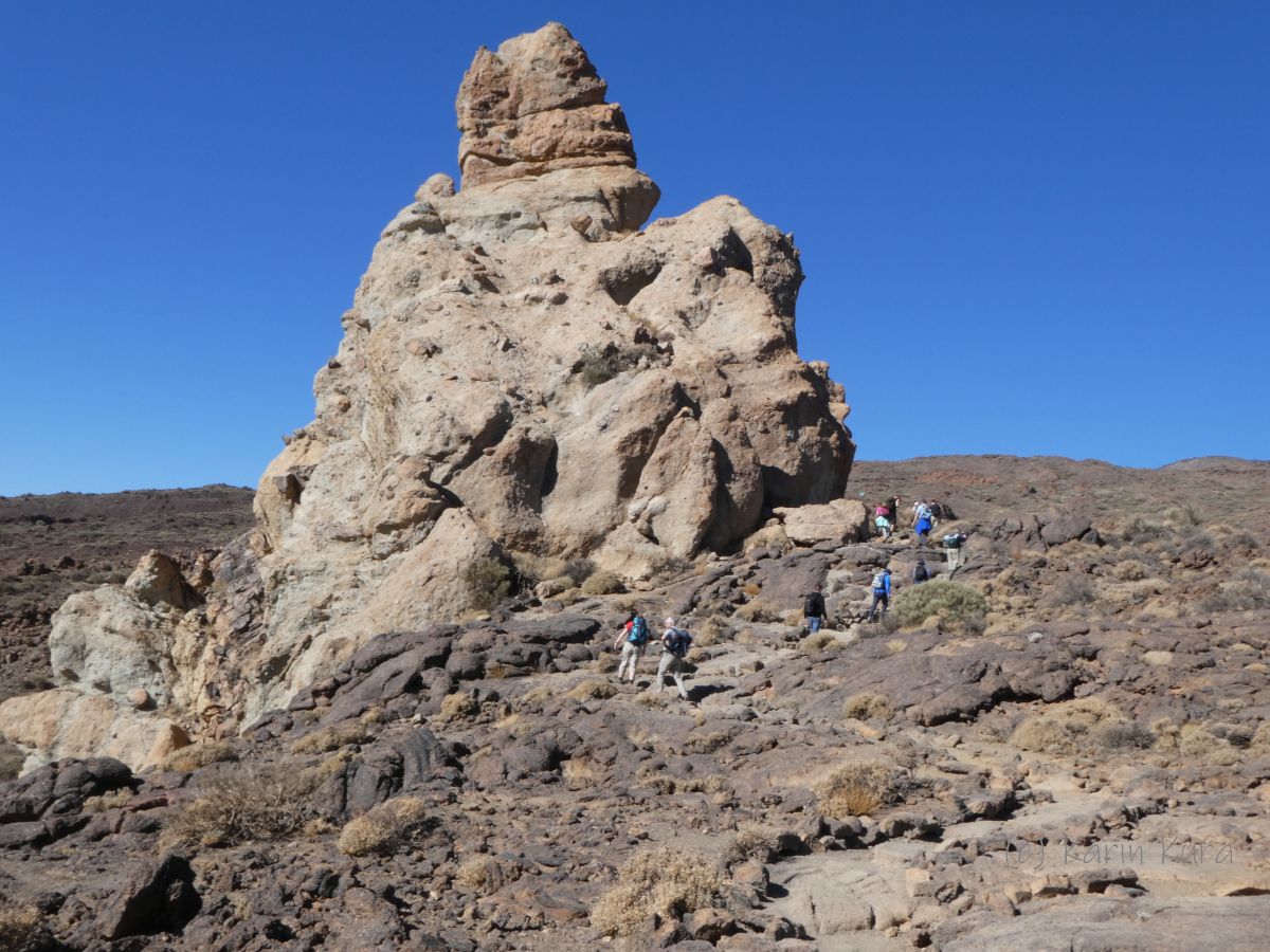 Vom Besucherzentrum Canadas Blancas läuft man zur Felsenwelt der Roques de García, ein beliebter und leichter Weg. Das Farbenspiel des Gesteins variiert von tiefschwarz über braun und gelb bis rötlich, eine faszinierende, außerirdisch anmutende Landschaft. Dann geht es hinab in die Caldera, der Kraterkessel, vorbei an einem tiefschwarz erstarrten Lavastrom.