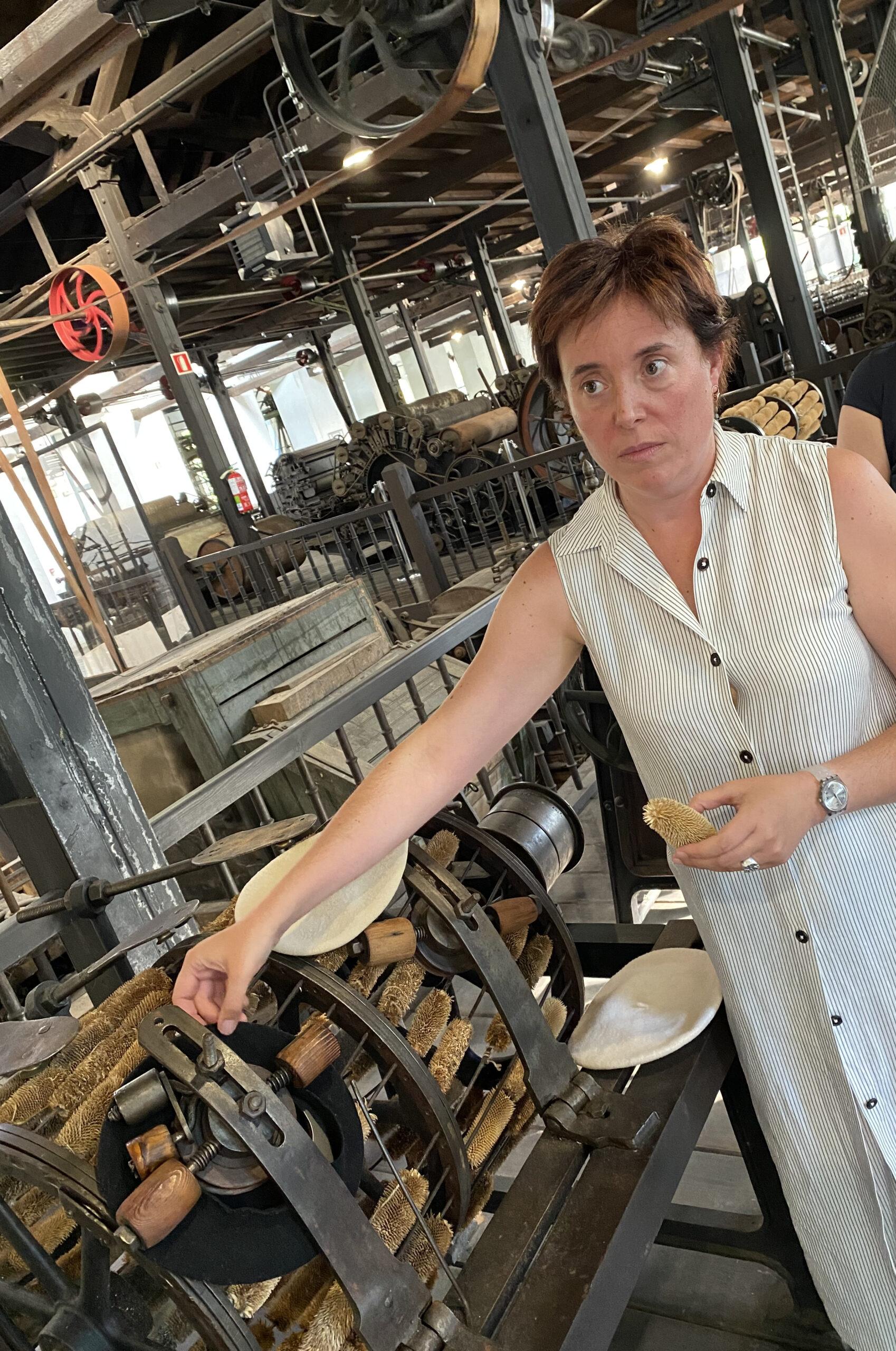 Die Baskenmütze ist das wohl bekannteste Kleidungsstück der „La Encartada“. Gute zwei Tage dauerte es damals, bis die legendäre und weltbekannt gewordene Mütze fertig war. Aimada erklärt mir, wie die Mütze aus Schafwolle gestrickt und genäht, dann mit heißem Wasser und Seife behandelt, also gefilzt wird. „Früher wurde sie häufig fürs Militär hergestellt“, sagt sie. Doch später sei es dann immer mehr die Kopfbedeckung der Fischer, Bauern – der Arbeiterklasse geworden. Und um eins klar zu stellen: „Unsere Txapela ist eindeutig baskischer Natur, sie kommt nicht aus Frankreich“, betont Aimada und lächelt stolz. Auch wenn die Franzosen das natürlich ganz anders sehen…