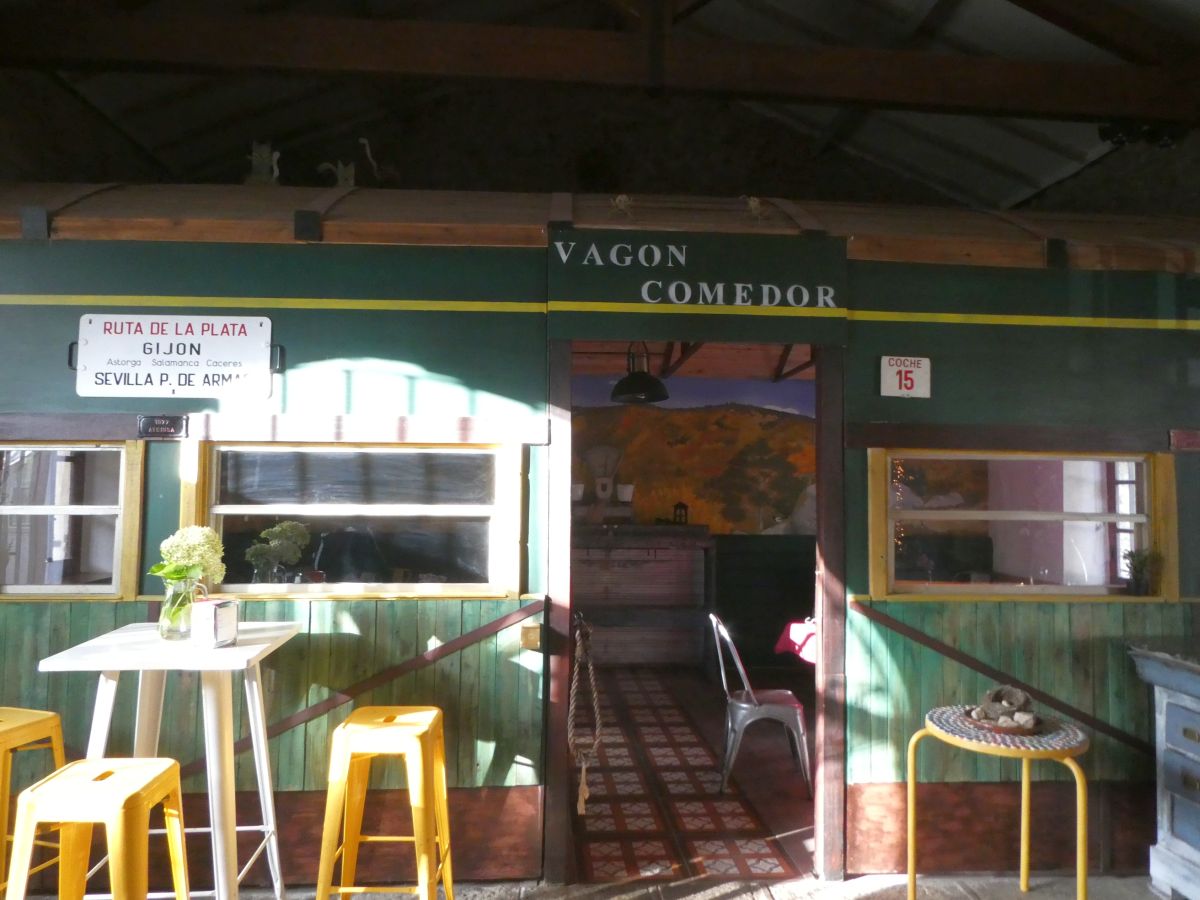Von den kleinen Bahnhöfen sind meist nur Ruinen übrig, aber es gibt auch restaurierte und zu Cafés umfunktionierte Stationen an der Radstrecke. Liebevoll hergerichtet wurde etwa der ehemalige Bahnhof in Puerto de Béjar. Alles rund ums Reisen ist hier versammelt, da stehen Koffer im Raum, Kaffee wird im Vagon Comedor, dem alten Speisewagen, serviert. Auf ein Stück ehemaliger Gleise stützt man seine Füße an der Bar. Von Puerto de Béjar nach Hervás führt der Radweg in gemächlichem Tempo bergab. Von rund 900 Metern Höhe in der Sierra de Béjar geht`s hinab ins Ambroz-Tal, durch dichte Kastanien- und Ahornwälder der Extremadura. Es ist Wochenende und mächtig Betrieb. Radfahrer und Spaziergänger kommen sich dabei erstaunlich wenig ins Gehege, man achtet aufeinander. Bald schon lichten sich die Wälder, es folgt ein Ausblick aufs Städtchen, umgeben von Terrassen mit Oliven und Kirchbaumreihen.