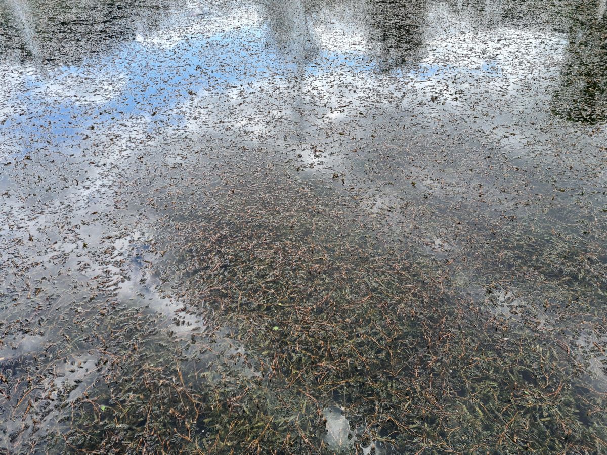 Im Zentrum der LaGa, auf dem Osterbergsee mit seinen Fontainen macht sich jetzt gerade das Krause Laichkraut breit. In der Schifffahrt verhasst, ist das untergetaucht wachsende Kraut sonst sehr nützlich. Es ist nämlich Sauersoff- und Schattenspender und bietet Fischen Unterschlupf und Schutz.
