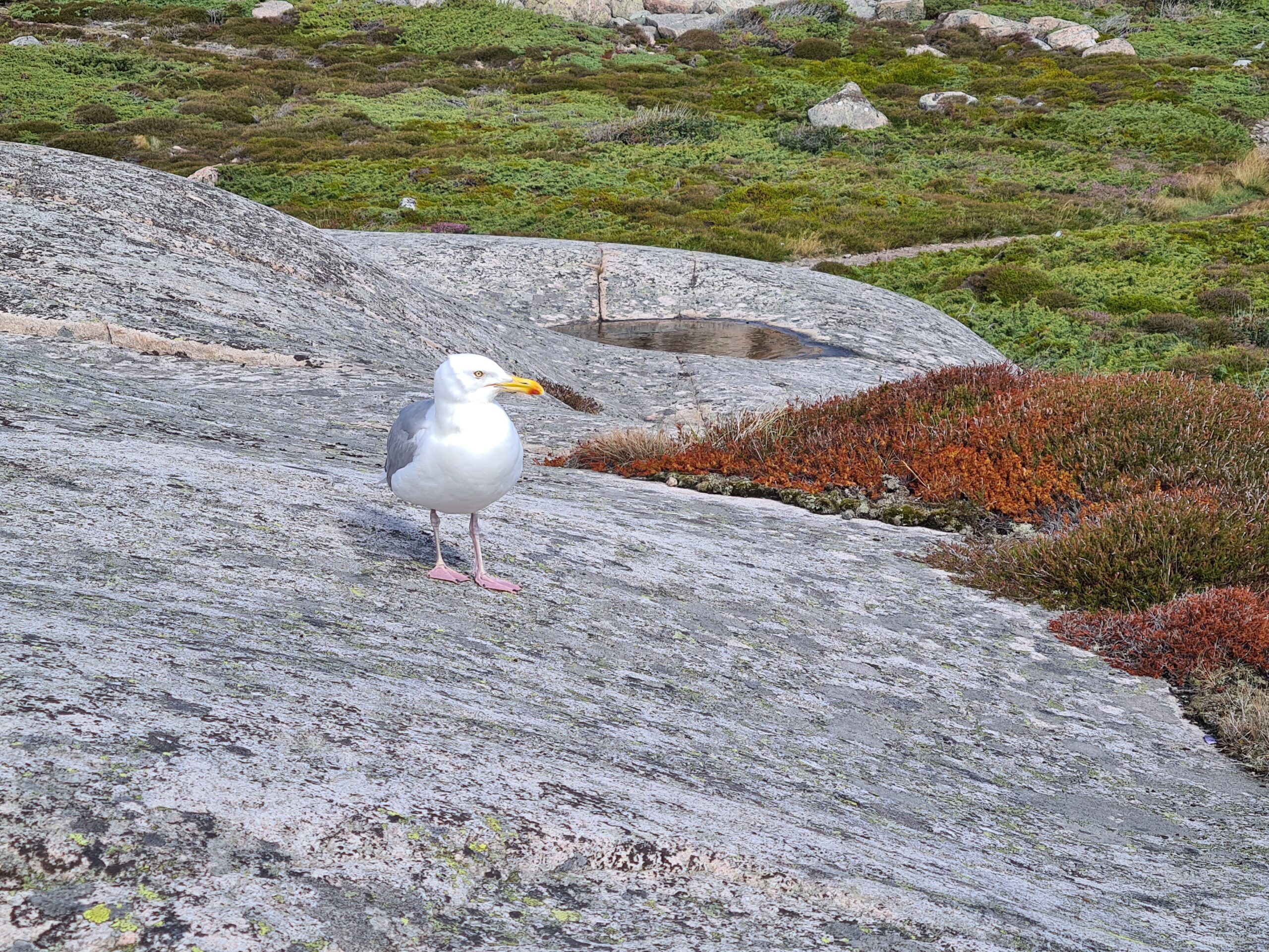 Es ist nicht groß, das Schutzgebiet Tjurpannan bei Grebbestad. Auf mehreren markierten Wegen kann man seine ganze Schönheit und Wildheit erlaufen: Am Ufer überall rundgeschliffene Felsen, an die das Wasser brandet. Heidekraut und Blumen nutzen jede Nische zum Wachsen. Es ist nicht besonders warm, vielleicht 20 Grad, und eine Brise weht auch immer. Trotzdem hat die schwedische Sonne eine enorme Kraft.Ein Piepen liegt in der Luft, Vögel. Eine verirrte Hummel brummt heran – hier gibt es keine Blüten. Also zieht sie weiter. Das vorherrschende Geräusch ist wieder die See, die an die Felsen brandet. Weiter im Landesinneren zeigen gekrümmte Windflüchter, von wo der Wind stetig weht, und Steinhaufen liegen als letzte Relikte der Eiszeit in der Landschaft. Ein Stück weiter lümmeln Kühe auf einem kargen, aber immerhin grünen Stück Land. Und freche Möwen buhlen darum, ein Stück vom Picknick auf den sonnenwarmen Felsen abzubekommen.