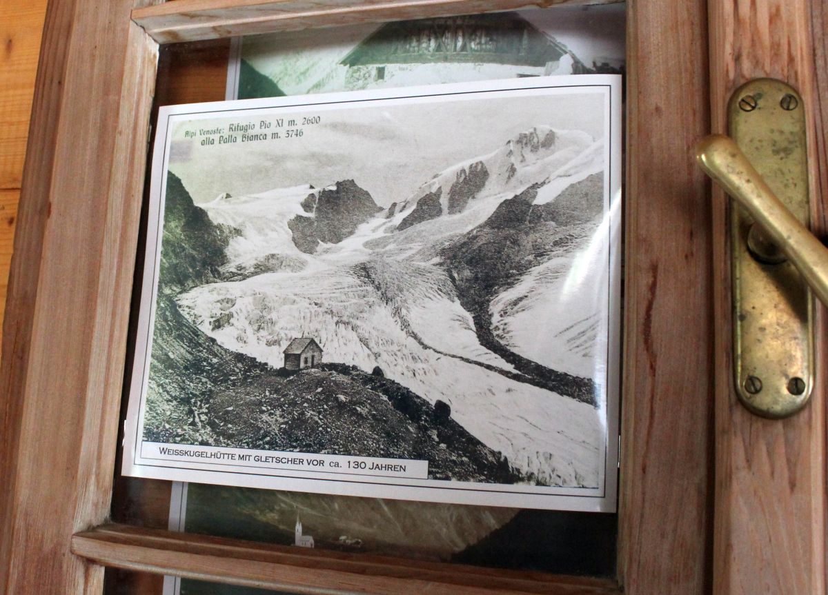 Christian und Irmhild haben die Weißkugelhütte jahrzehntelang bewirtschaftet. Sohn und Schwiegertochter der siebenköpfigen Familie Hohenegger, bei der wir stets im Tal im Alpengasthof Weißkugel wohnten. Christian war es, der mich als erster auf den Klimawandel in den Alpen aufmerksam gemacht hat. Mitte der 1990er Jahre ist er in der Saison für einen Abend heruntergekommen. Er stand auf der Straße, die Augen zusammengekniffen schaute er zur Weißkugel hinauf und schüttelte lange den Kopf. Als ich ihn fragte, was los sei, sagte er besorgt: „Der Gletscher geht immer weiter zurück.“ Mit ausgestrecktem Arm malte er dessen früheres Ausmaß in die Luft. Er fragte, wie weit das wohl noch gehen werde.