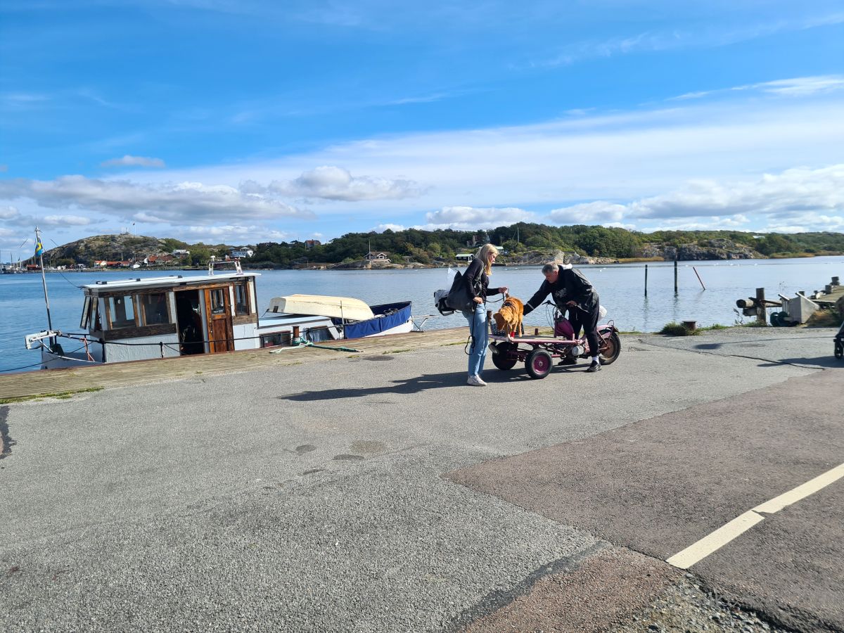 Bränno ist autofrei. Die rund 900 Inselbewohner bewegen sich zu Fuß, mit dem Fahrrad oder mit Transportmofas, die vorn eine Ladefläche haben. Darauf stehen fast immer Einkäufe oder ein Korb mit Äpfeln, manchmal sitzt auch ein Hund oder ein Mensch darauf. Am schönsten war ein altes Paar, bei dem der Mann seine Frau auf der Fläche sitzen hatte, die über das ganze Gesicht strahlte.