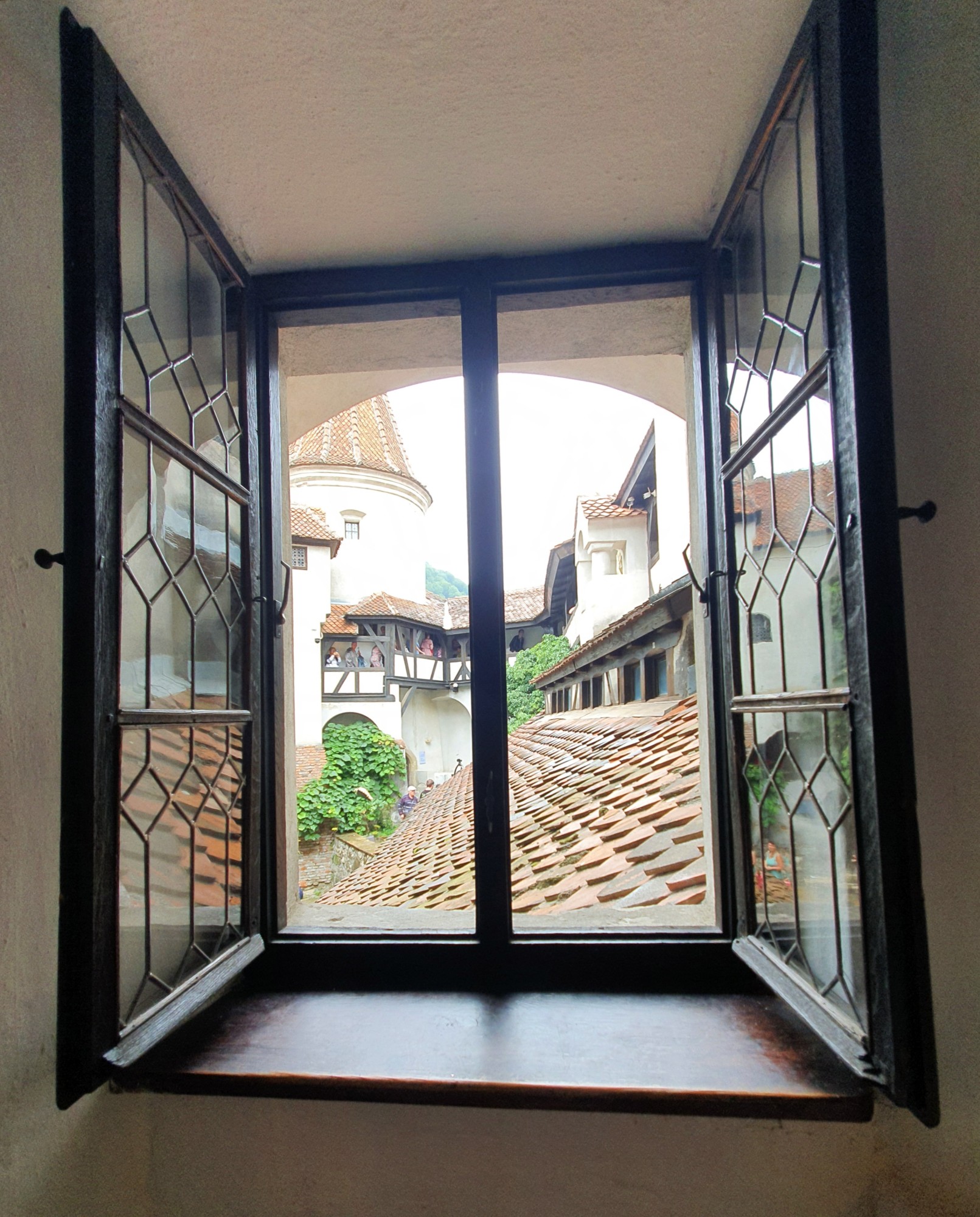 Und genau die machte sie zu ihrem neuen Familiensitz: Marie bekam die leicht verfallene Burg 1920 von der Stadt Brașov, Kronstadt. Und drehte sie auf links. Das Gemäuer bekam ein drittes und viertes Stockwerk, zeitgemäße Treppen, Kachelöfen statt der offenen Feuerstellen, Fenster statt Schießscharten, ein Telefon und einen inneren Aufzug vom Park tief unten zur Burg hoch. Die Turbine für die Burgbeleuchtung liefert am Ende auch der ganzen Umgebung freie Elektrizität…