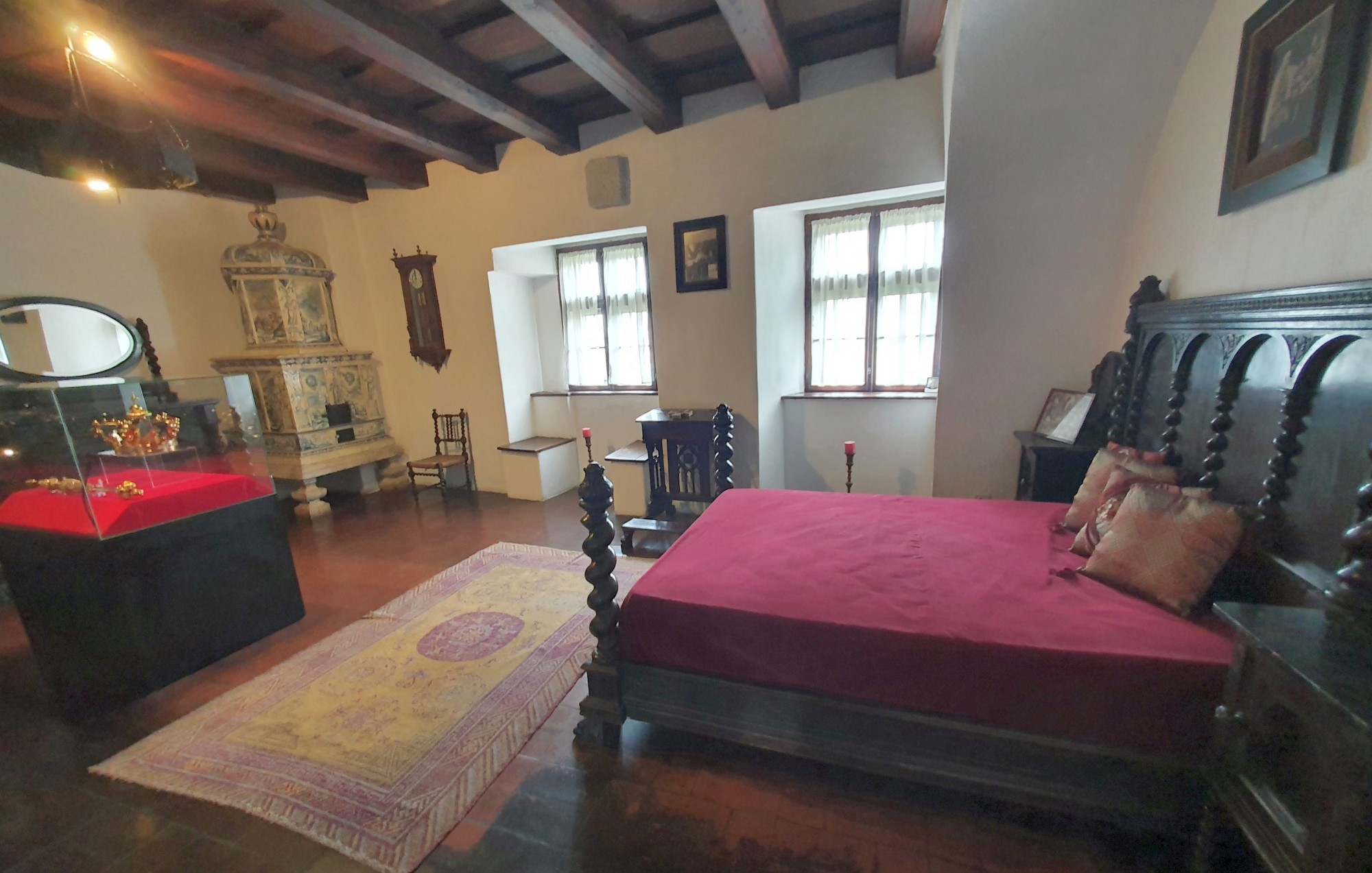Die gemütliche Einrichtung können wir uns direkt angucken, die meisten Möbel sind noch original erhalten. Ihr Schlafzimmer, sein Schlafzimmer, der Ofen, an dem meistens die Kinder gespielt haben. Wir kraxeln durch den Geheimgang, den das Renovieren freigelegt hat. Spazieren oben über die Balustrade, die gemütlich den Innenhof überblickt. Und auf dem Rückweg gibt’s noch eine kleine Märchenausstellung, multimedial und mit Puppen, die ein paar Märchen und Legenden der Gegend vorstellt. Dracula ist nicht dabei, aber tanzende Feen und auch wat Gruseliges.